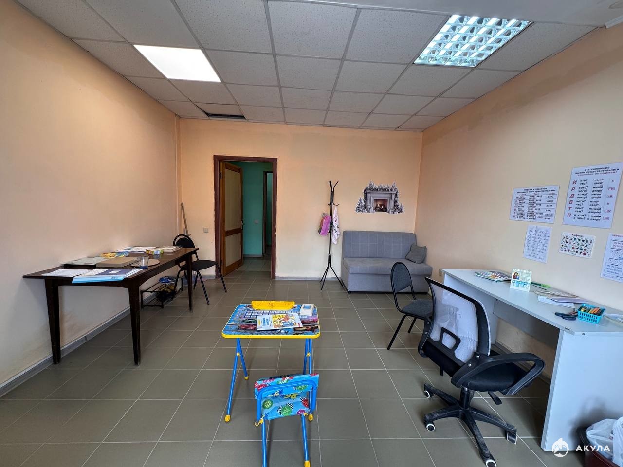 Ремонт: пол-плитка, стены под покраску, потолок-армстронг.