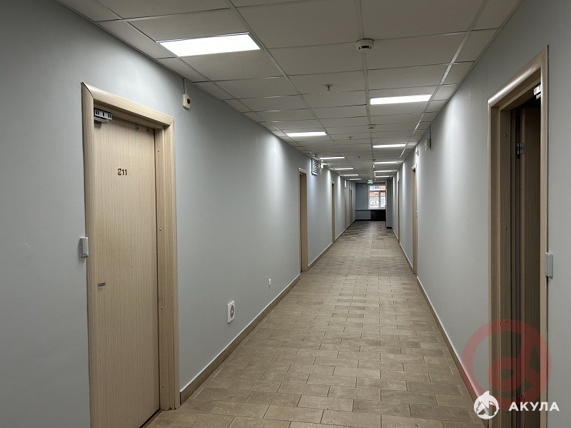 Планировка офиса - коридор с офисами по левой и правой стороне. Кабинеты различной площади. Свой санузел. Часть кабинетов меблирована. Разводка локальной сети, установлено множество розеток. Пожарная сигнализация, центральное кондиционирование. Дополнительно к ставке аренды арендатор оплачивает потребленную электроэнергию и вывоз мусора.