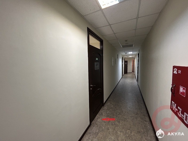 Коридорная система. Высота потолка 2, 70 метра. Помещение состоит из 1 кабинета, площадью 23 кв.м, разделен на две части легкой перегородкой. Хороший офисный ремонт.