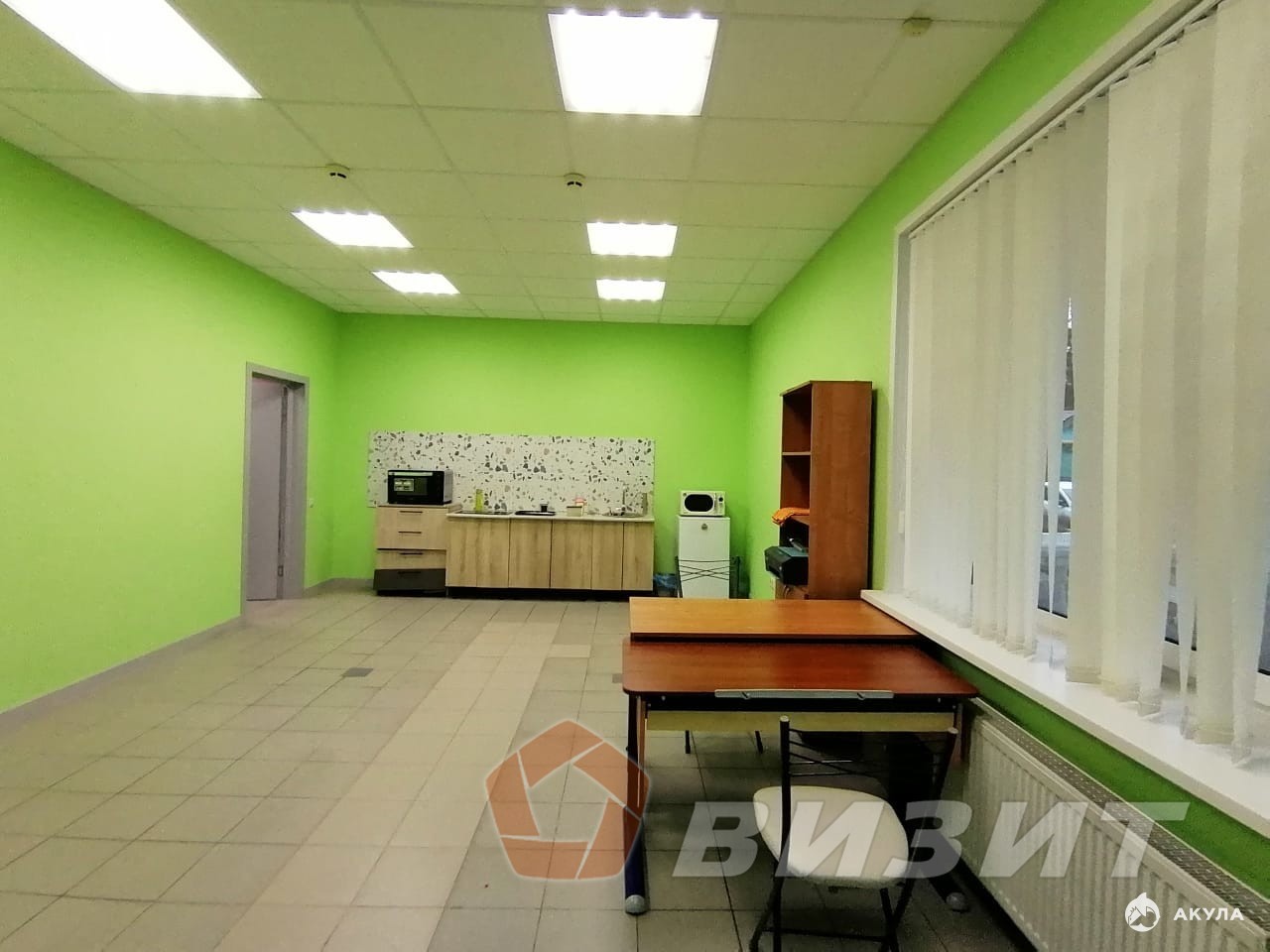 Ремонт в помещении: пол - плитка; стены - покраска; потолок - гипсокартон, армстронг; освещение: комбинированное.