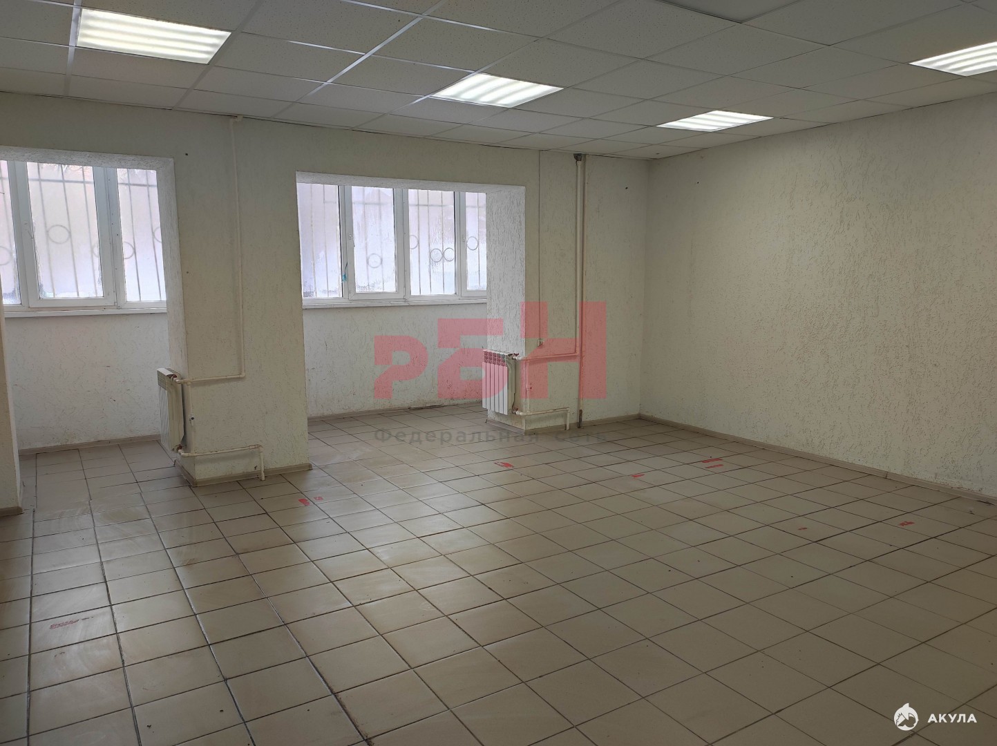 - полы-плитка, стены-декоративная штукатурка, потолок-армстронг, светодиодное освещение;