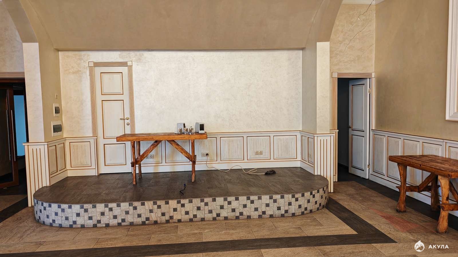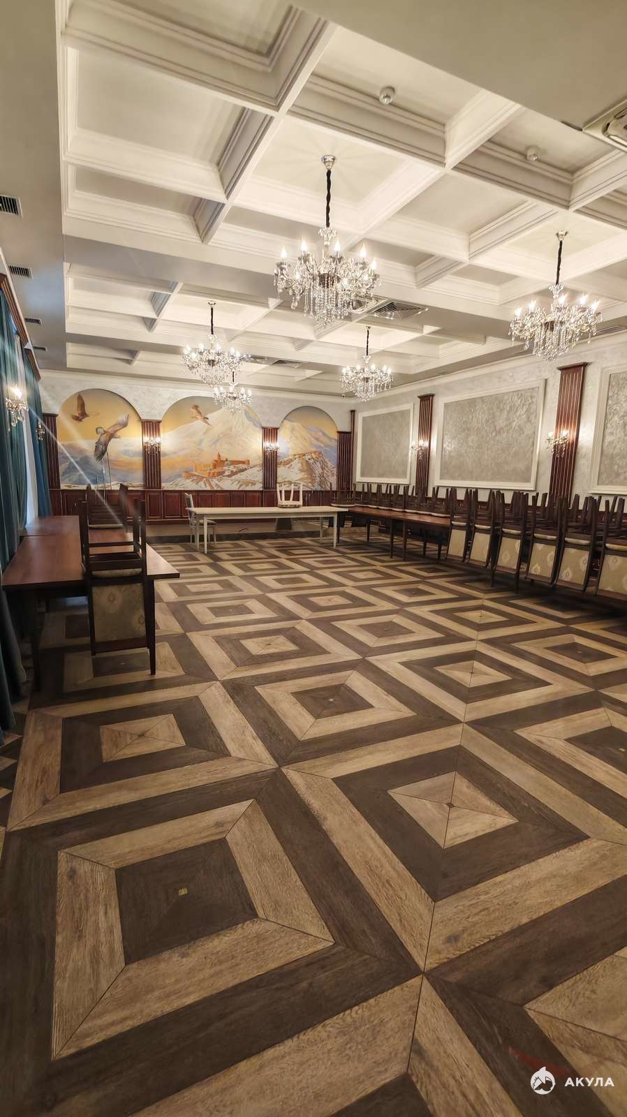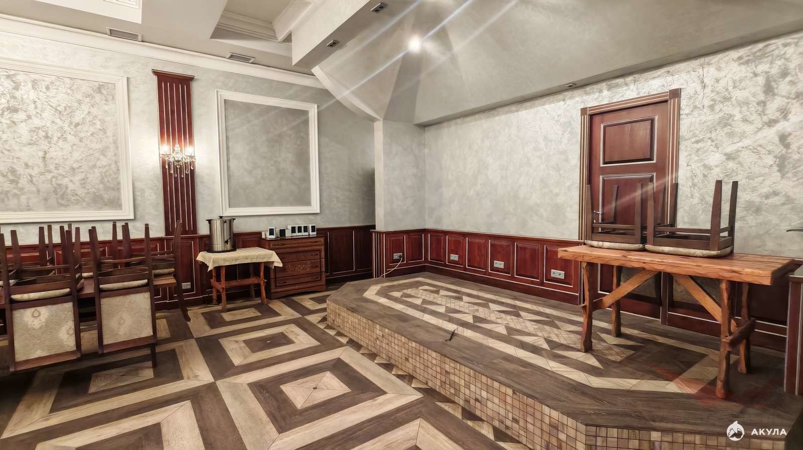 - 3 закрытых помещений – банкетных залов площадью: 550м2, 135 м2, 195 м2,