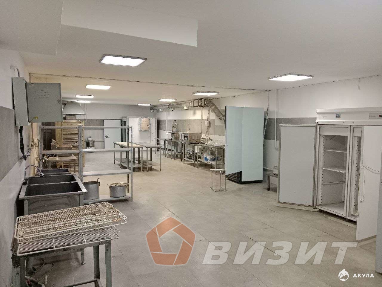 Цех Маленький: 1. Мойка двойная. 2. Морозильная камера "Снежок". 3. Морозильная камера - 2шт. 4. Холодильник - 2шт. 5. Подносы - 25шт. 6. Фритюрница - 2шт. 7. Плита. 8. Кастрюли 1шт - 15л и 1шт - 25л. 9. Парк автомат.
