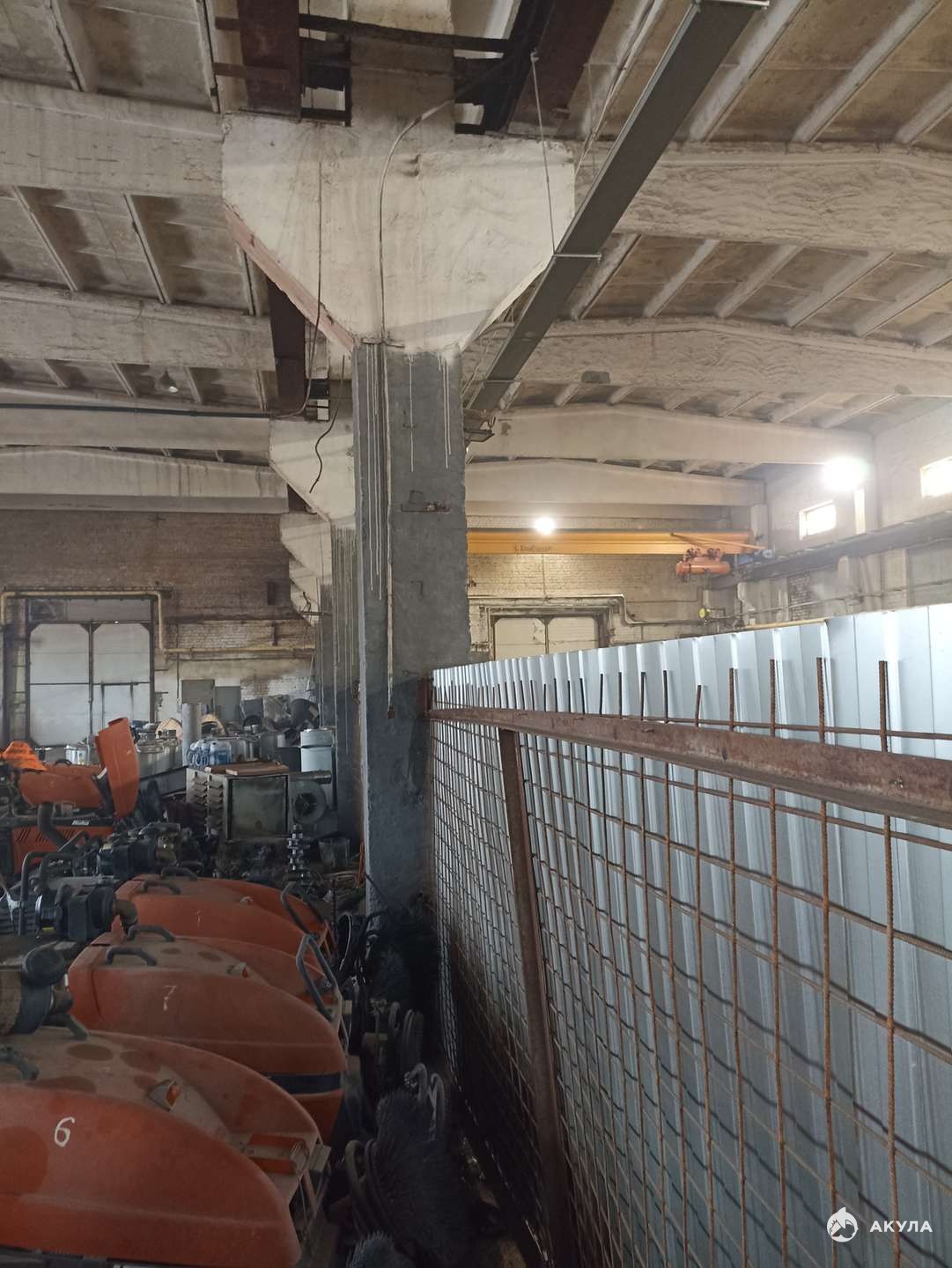 В здании высокие потолки, при необходимости можно установить кран-балку грузоподьемностью 10тонн.
