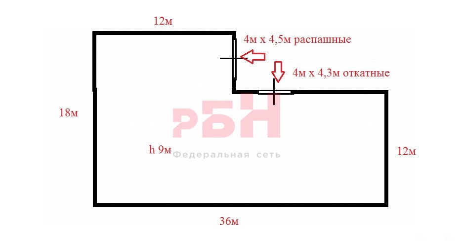 - высота потолка 9 м,