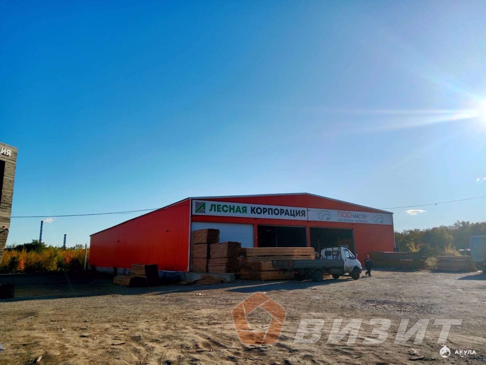 Перед складом большой земельный участок под возможное строительство склада или стоянку/парковку.