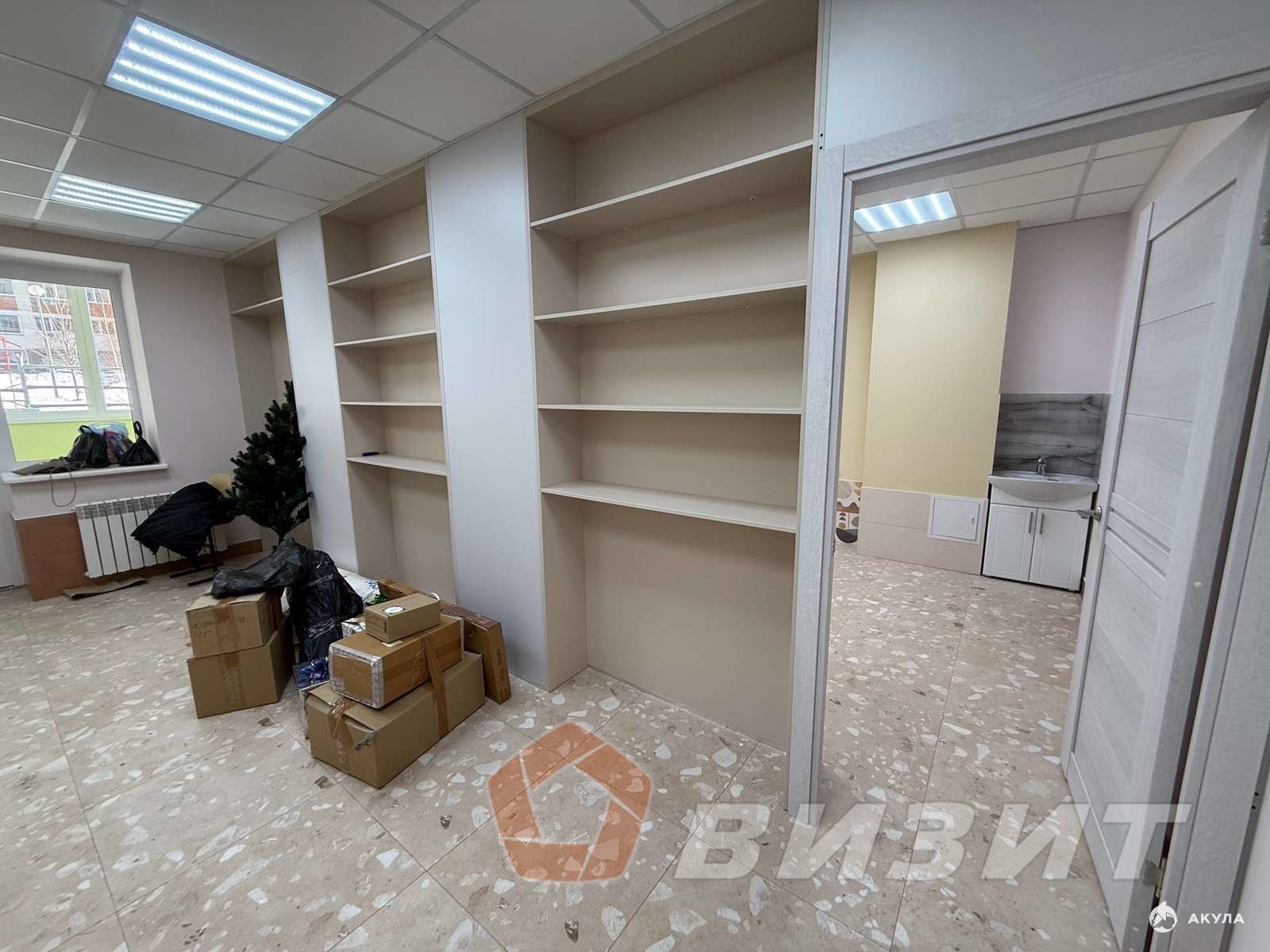 Ремонт в помещении: пол плитка, стены окрашены, потолок армстронг.