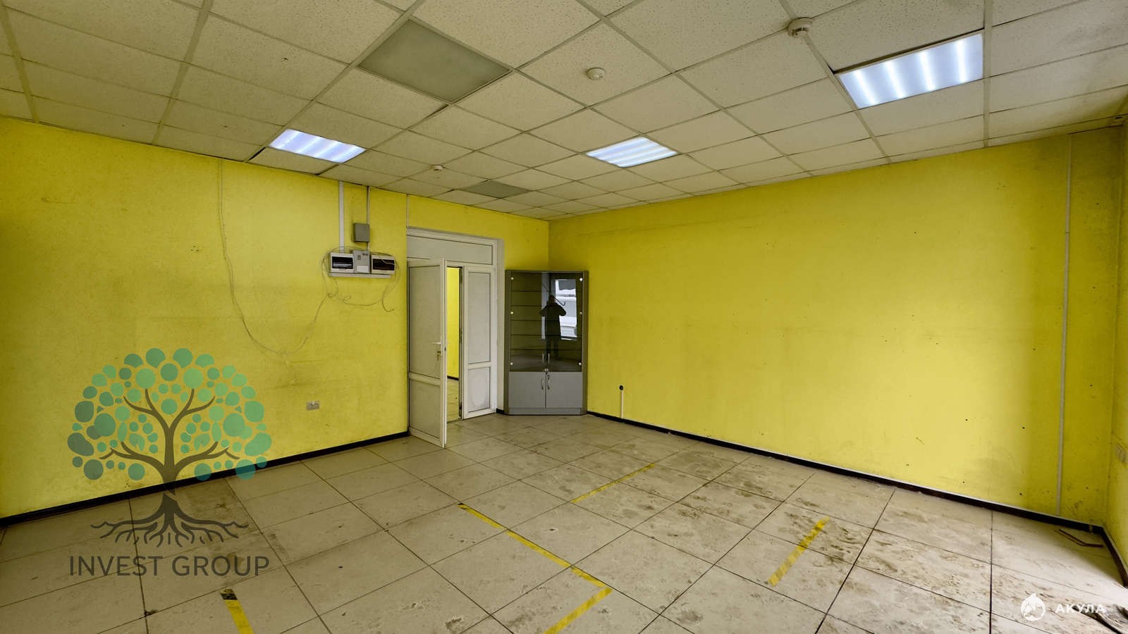 Ремонтом: пол - керамогранит, стены - окрашены, потолок - Армстронг.