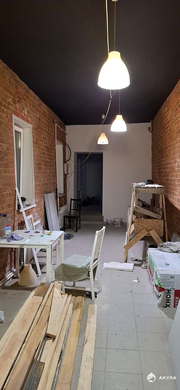 ПРЕДЧИСТОВАЯ ОТДЕЛКА с элементами черновой: окна ПВХ, стяжка, одна стена выполнена в декоративном кирпиче, установлены системы отопление и водоснабжения, частичная электроразводка. Имеется дымоход под мангал. С/у отделан плиткой.