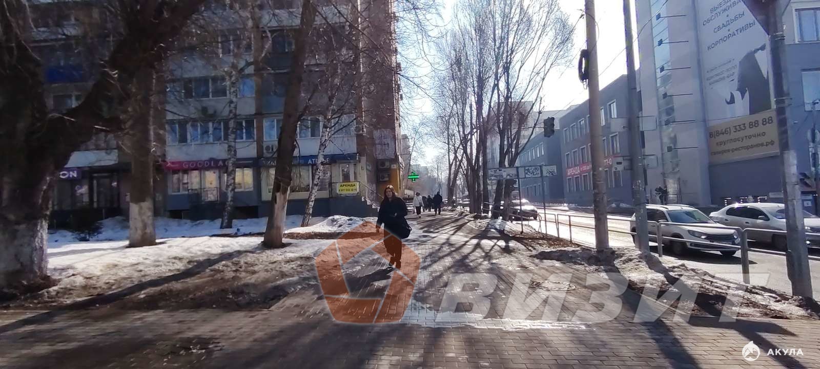Место под рекламу на фасаде (рекламная конструкция над входом и по всему фасаду).