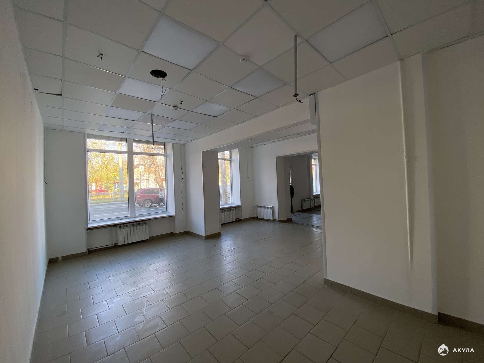 В помещении отдельный вход, потолок Армстронг со встроенными светодиодными светильниками, стены окрашены, на полу уложена плитка. Над входом установлена тепловая завеса, смонтирована пожарная сигнализация. Широкоформатные окна дают много естественного света. Есть свой санузел, все коммуникации центральные.