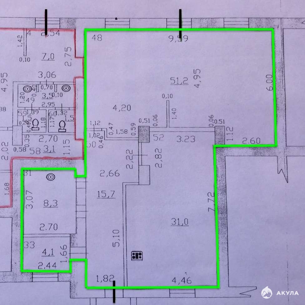 Два отдельных входа: центральный – с фасадной части, запасной – со стороны двора. Качественный ремонт, витринные окна, удобная планировка, городские коммуникации, 25 кВт электроэнергии, газ, вентиляция выведена на крышу дома, кондиционирование. Парковочный карман перед центральным входом.