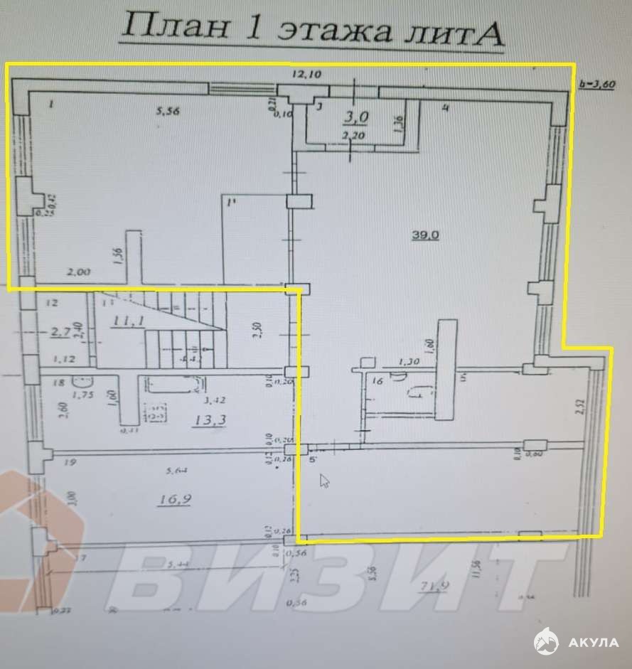 Высота потолков : 3, 6м.