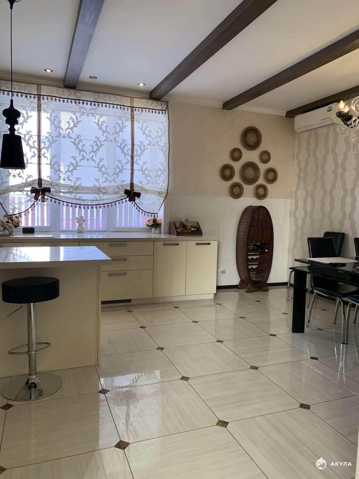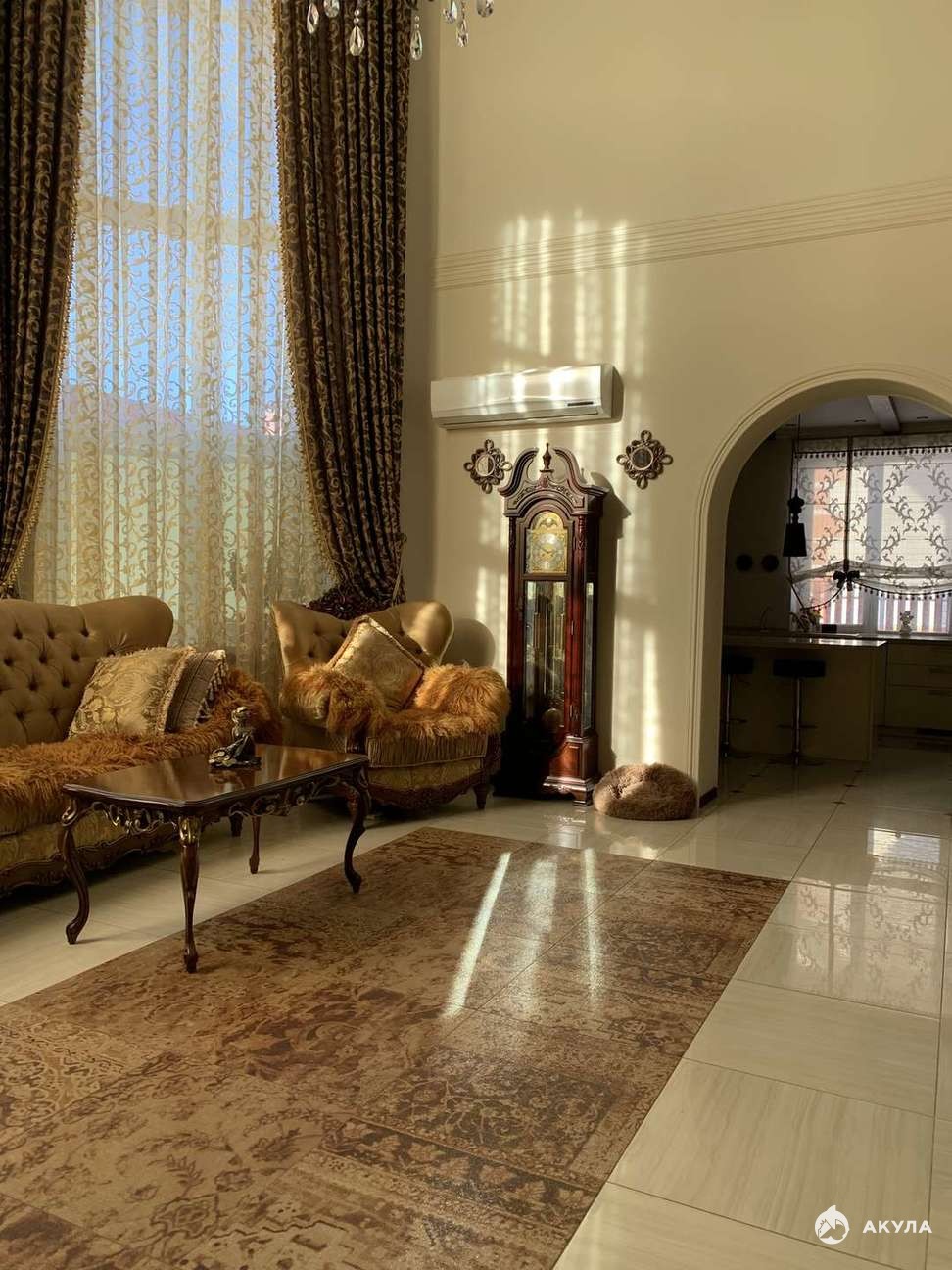 Высота потолка в верхней части дома составляет 8 метров (второй свет).