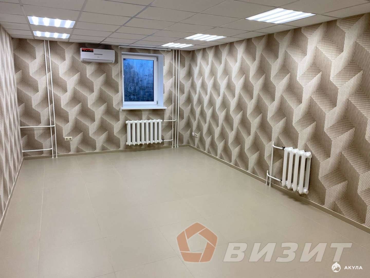 Современный ремонт плитка на полу, стильные обои на стенах, подвесные потолки Armstrong и элегантное светодиодное освещение.