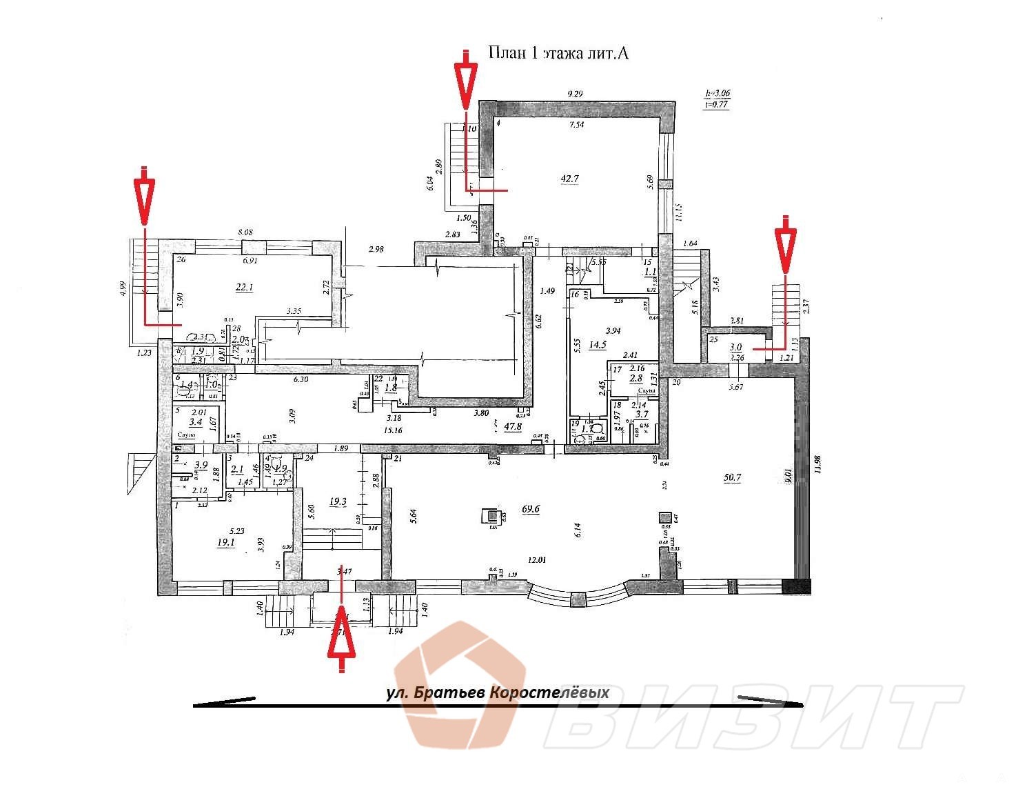 Планировка: 3 зала, 3 кабинета, 3 подсобки и санузел. Возможна перепланировка.