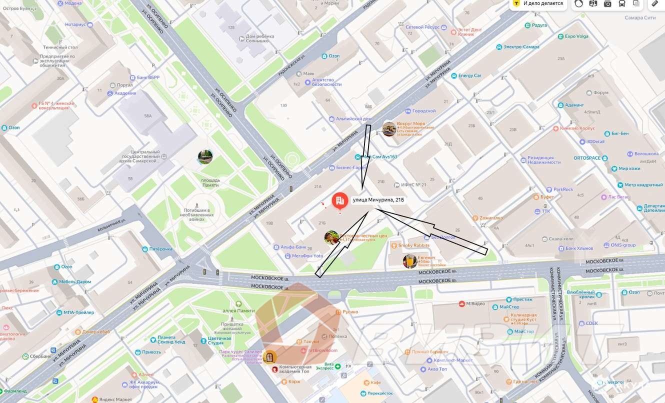 г. Самара, Октябрьский район, ул. Мичурина д. 21Б. Ближайшее пересечение с ул. Московское шоссе.