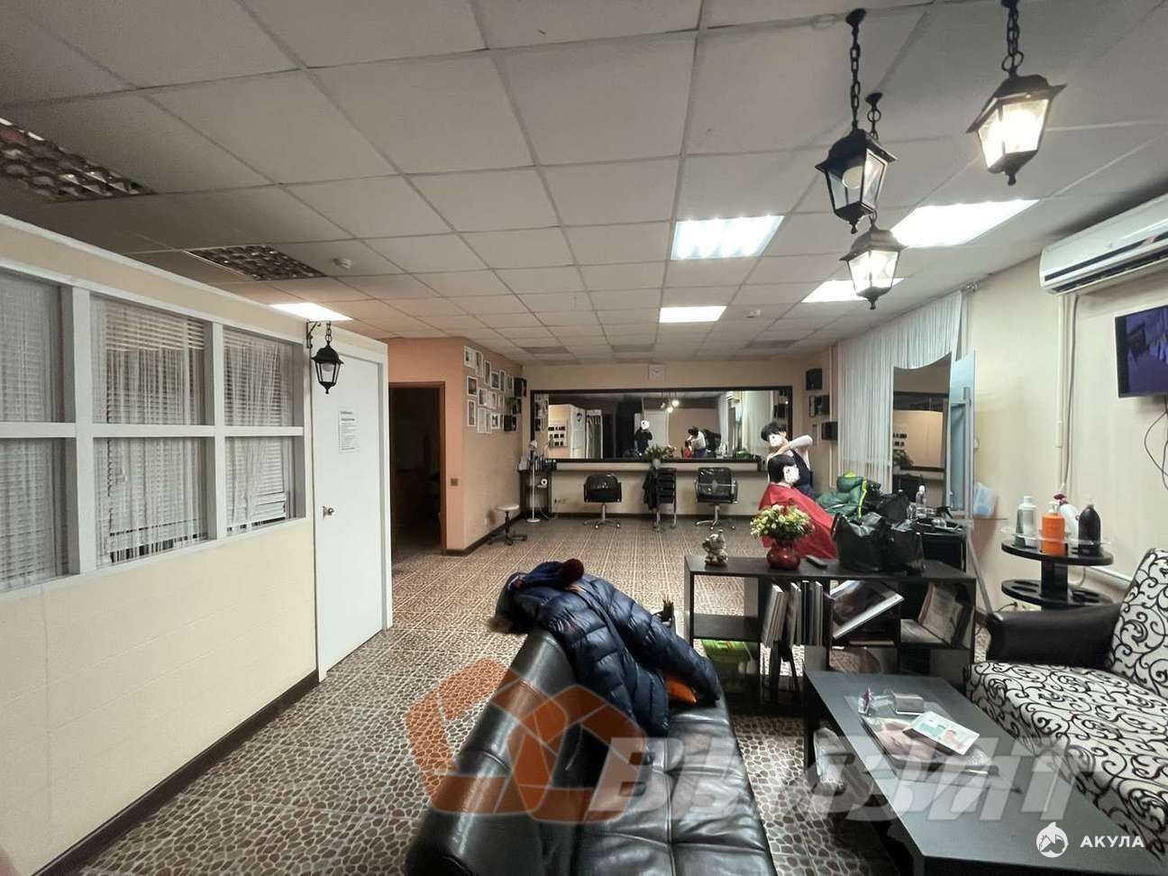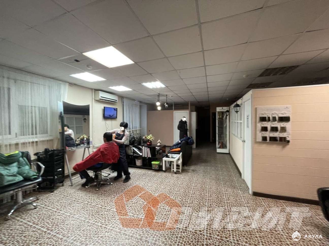 Ремонт в помещение: пол- плитка, стены - окрашены, потолок - армстронг.