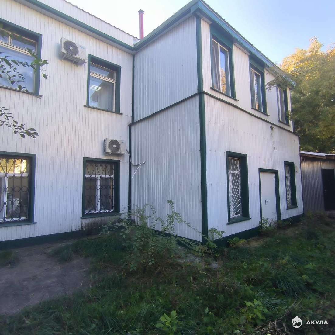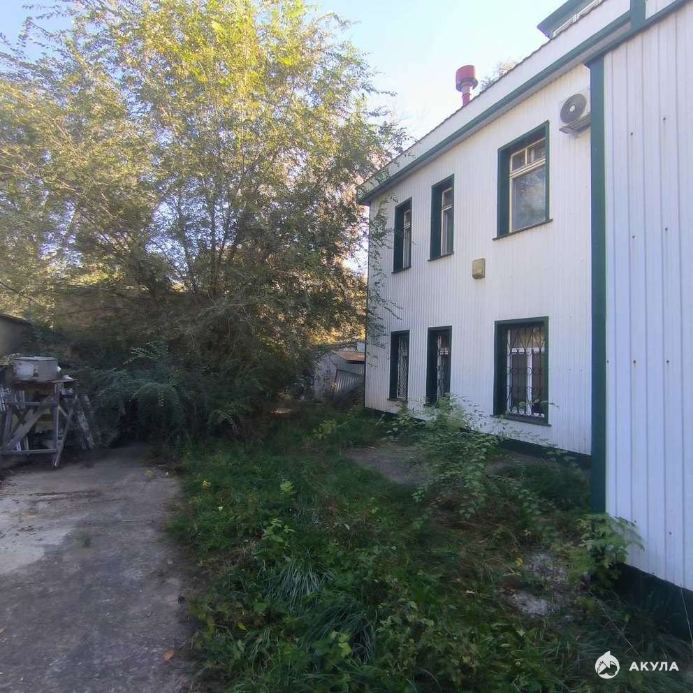 Здание прижато к углу участка, большая площадь участка свободна для дальнейшего использования.