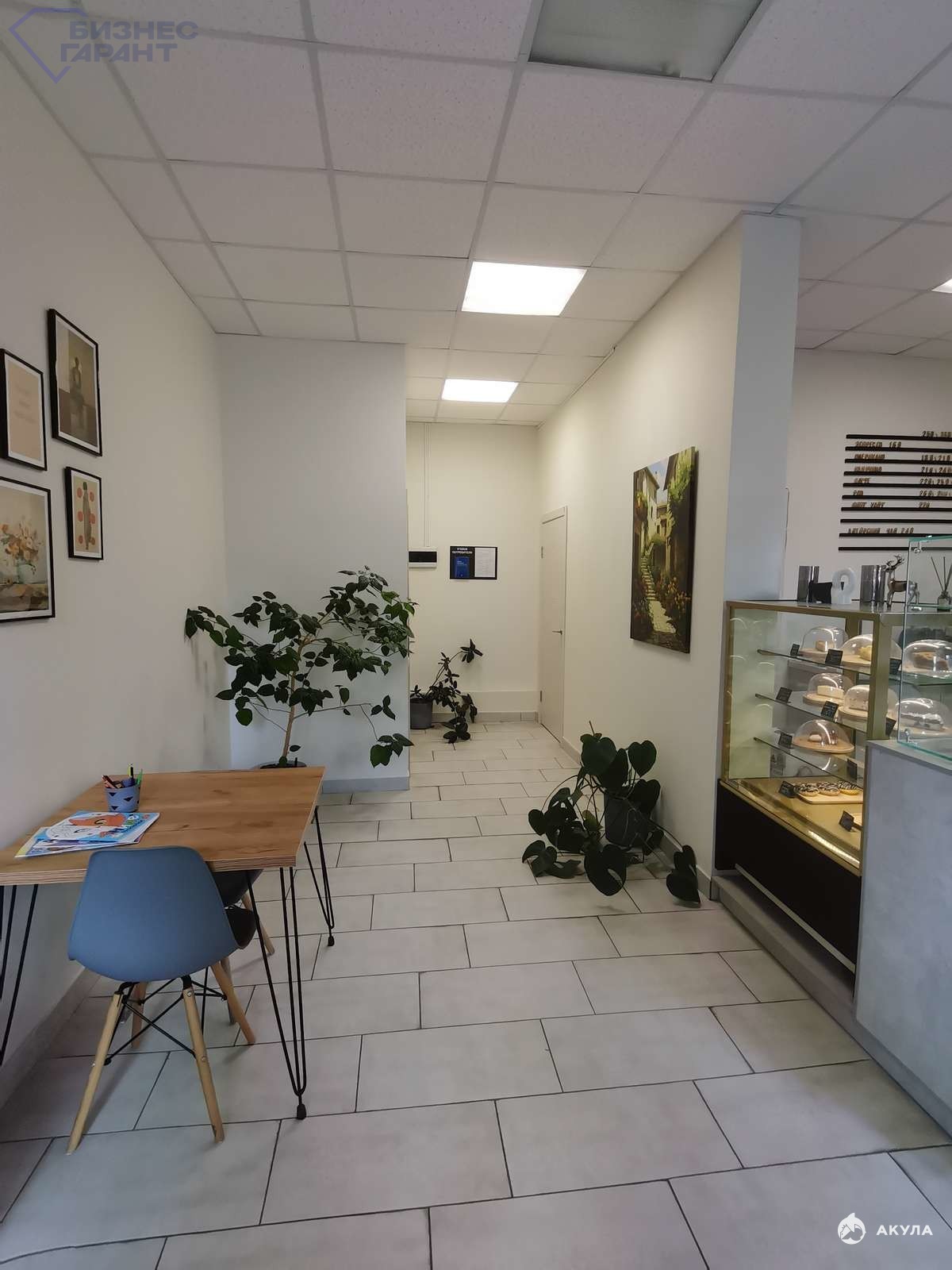 Ремонт в помещении: пол - плитка, стены - окрашены, потолок - армстронг, освещение светодиодное.