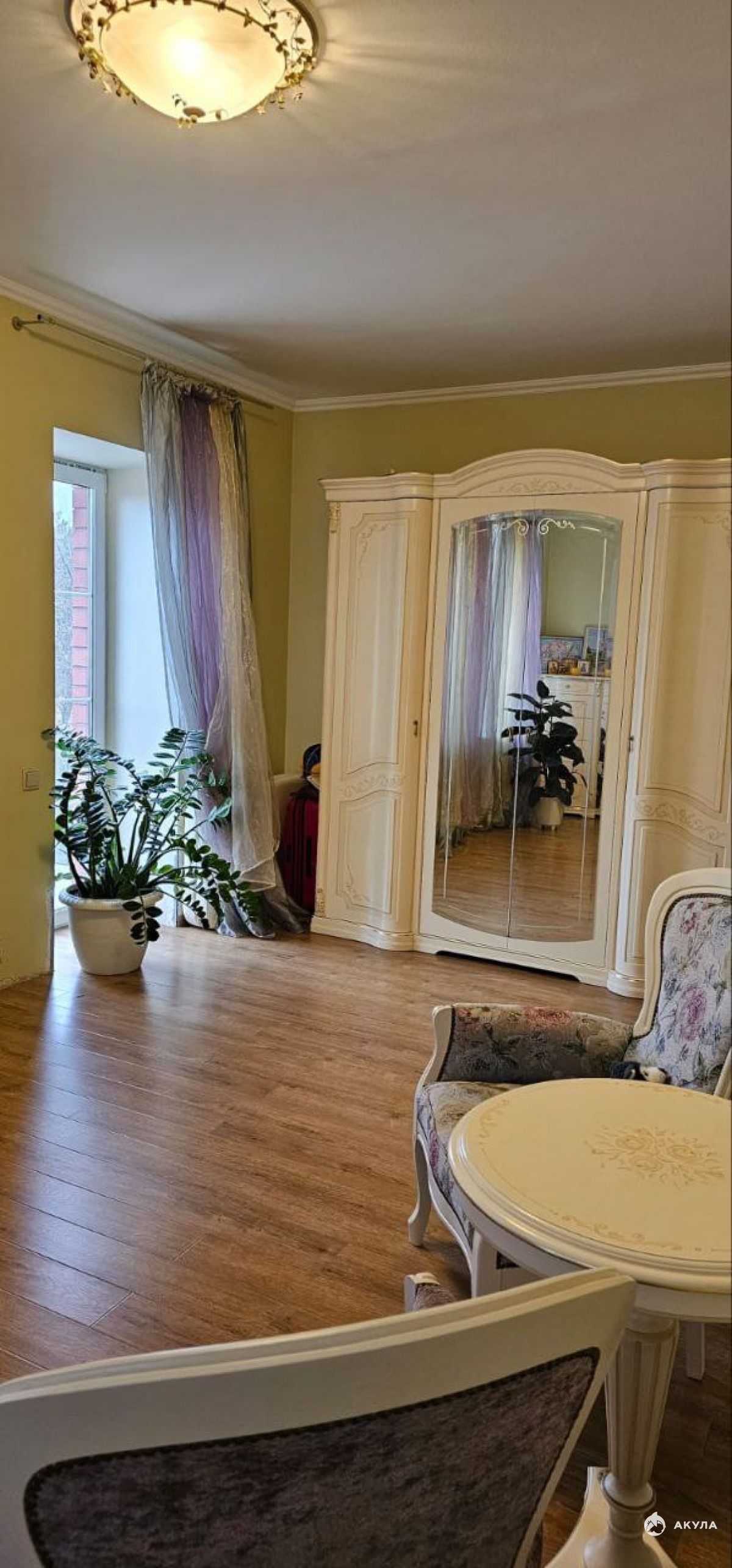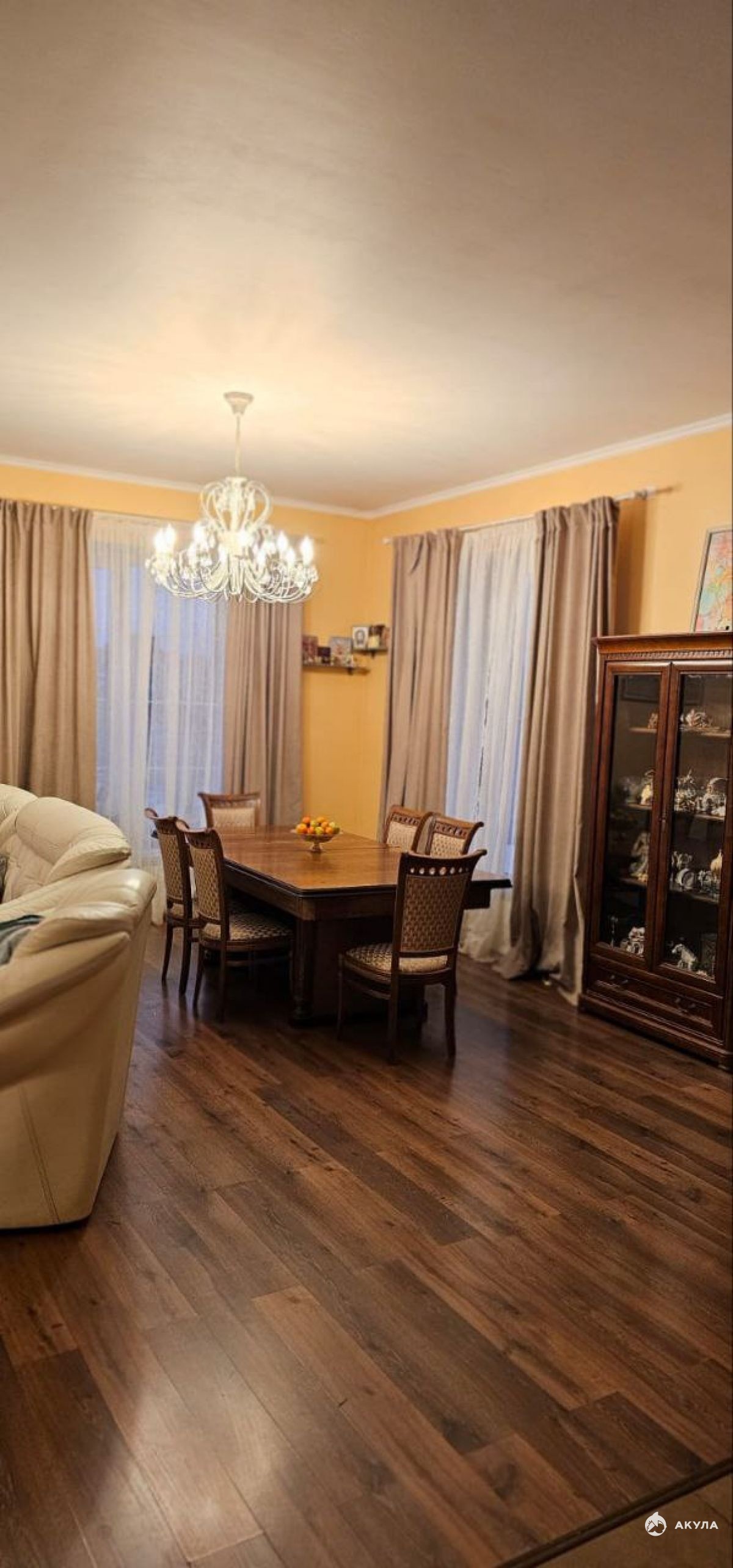 В доме газовое отопление, вода питьевая со скважины, для полива своя скважина. Высота потолков 3.1 метра, на первом этаже гостиная с камином, кухня, гостевая комната, санузел.
