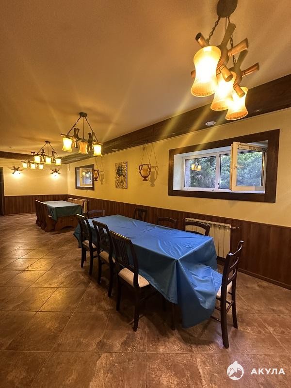 Цокольный этаж: бильярдная комната, большая столовая, 2 санузла, просторная оборудованная кухня с удобствами и уютный небольшой кабинет с камином.