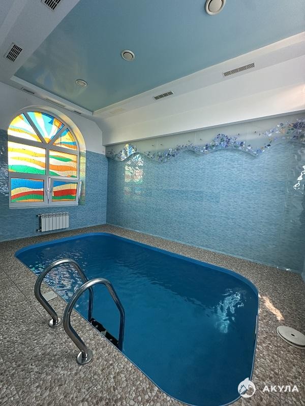 Банный комплекс общей площадью 100 м2 с бассейном и видом на сад. На территории дома большая открытая парковка для а/м и крытая парковка.