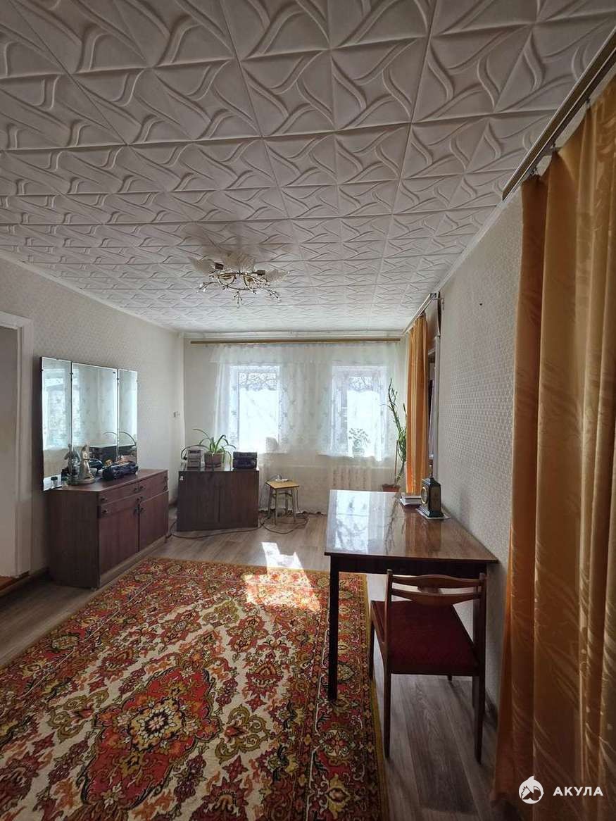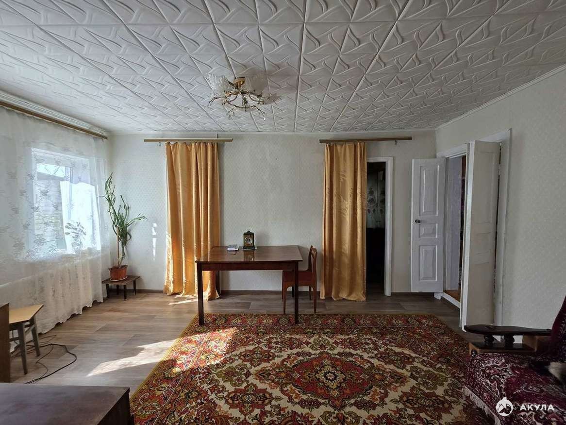 Продаю дом 57, 2 кв.м. на участке 7 соток. Дом деревянный, две большие комнаты 16 и 15 метров, и две маленькие спальни. Кухня 10 метров, есть сени и веранда. Отопление газовое, слив в доме, вода из колодца. Есть подвал. На участке своя баня, погреб, сарай. Рядом остановки, магазины, дорога - асфальт. Дом 1974 года постройки. Участок ухоженный, посажены плодовые деревья . Любая форма оплаты.