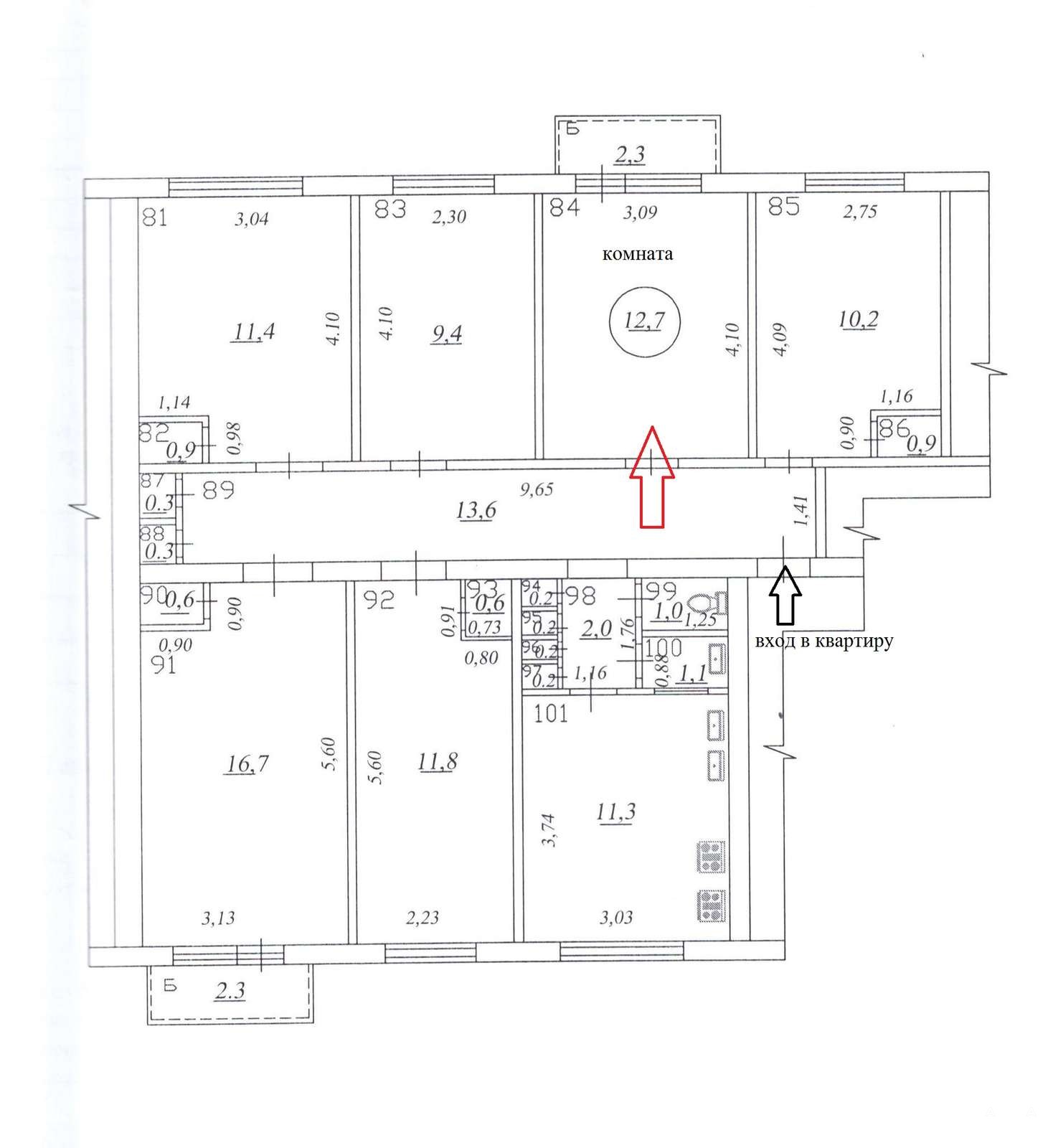 Комната находится в 5-комнатной квартире, обшей площадью 105, 6 кв.м., площадь кухни - 11, 3 кв.м., (места хватит всем), с/у - раздельный, есть кладовые помещения.