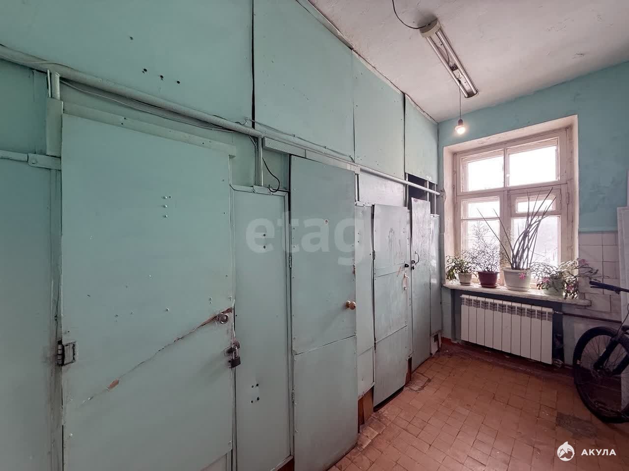 Помещение просторное, с индивидуальной кухонной зоной, остеклено пластиковыми окнами, установлена новая металлическая входная дверь. Комната находится на ликвидном этаже, который полностью закрывается, обеспечивая дополнительную безопасность и приватность. На этаже организовано выделенное место для стиральной машины, а также обустроены современная душевая и санузел, которыми пользуются всего две комнаты. Соседство характеризуется как доброжелательное и спокойное.