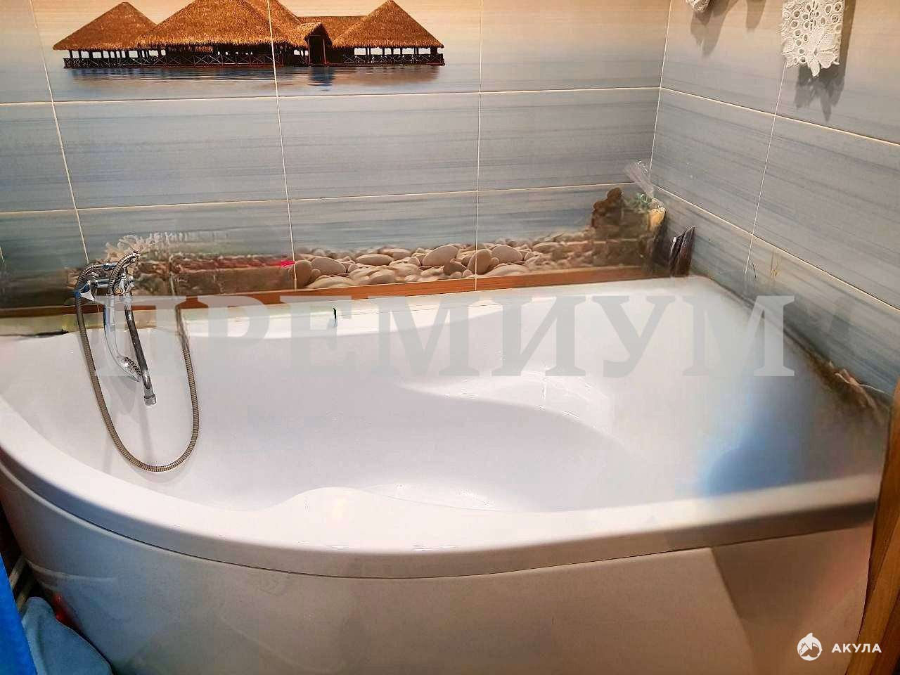 Совмещенный санузел в кафеле, выполнен качественный ремонт в современном стиле. Установлена акриловая хорошая ванна с толщиной акрила 3мм