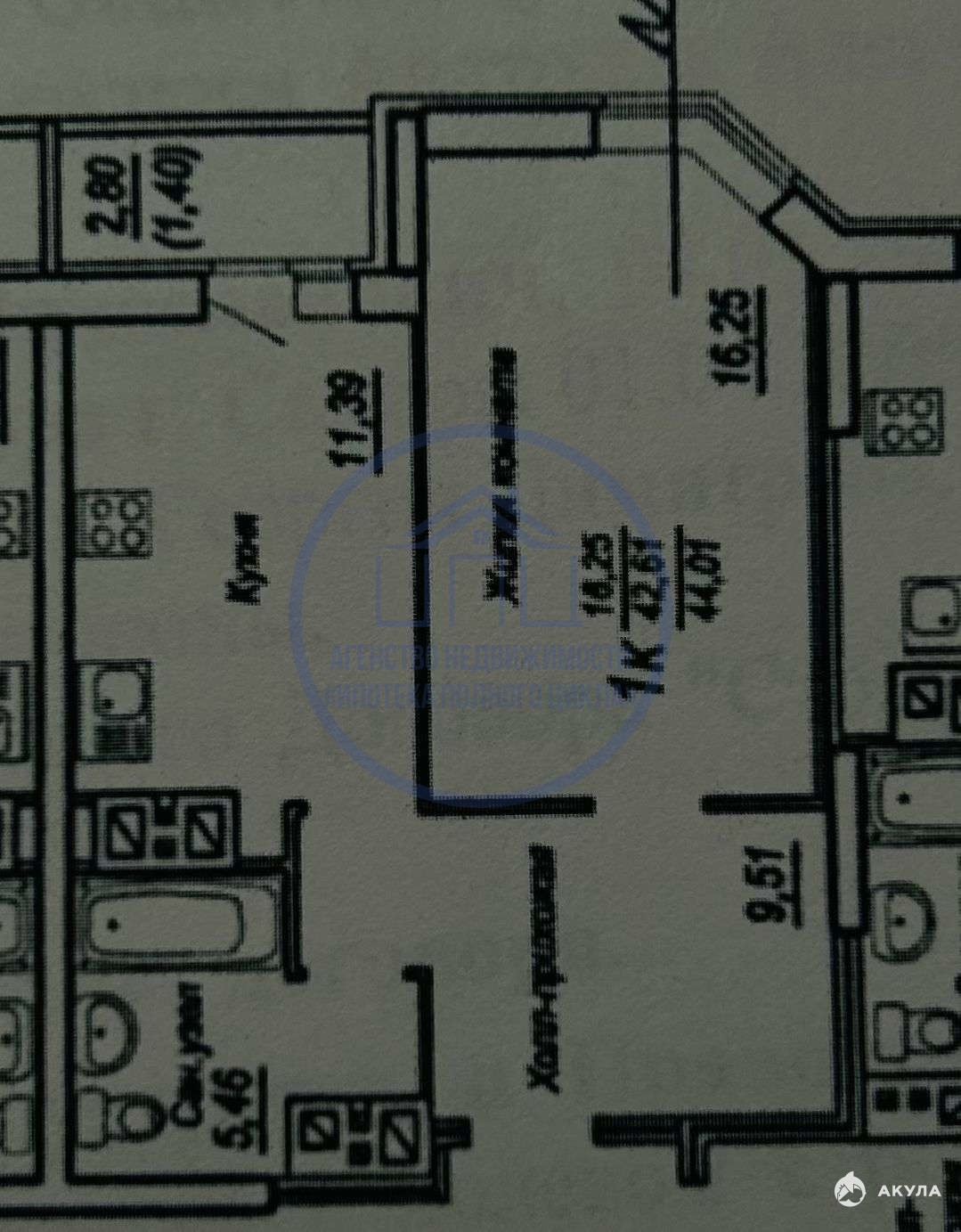 Продается просторная 1-комнатная квартира. Общая площадь : 44, 50 кв. м Планировка: -Кухня 12 кв.м -Комната 16, 5 кв.м