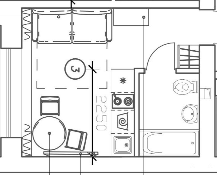 Студия будет передаваться покупателю укомплектованная кухонным гарнитуром со встроенной техникой.