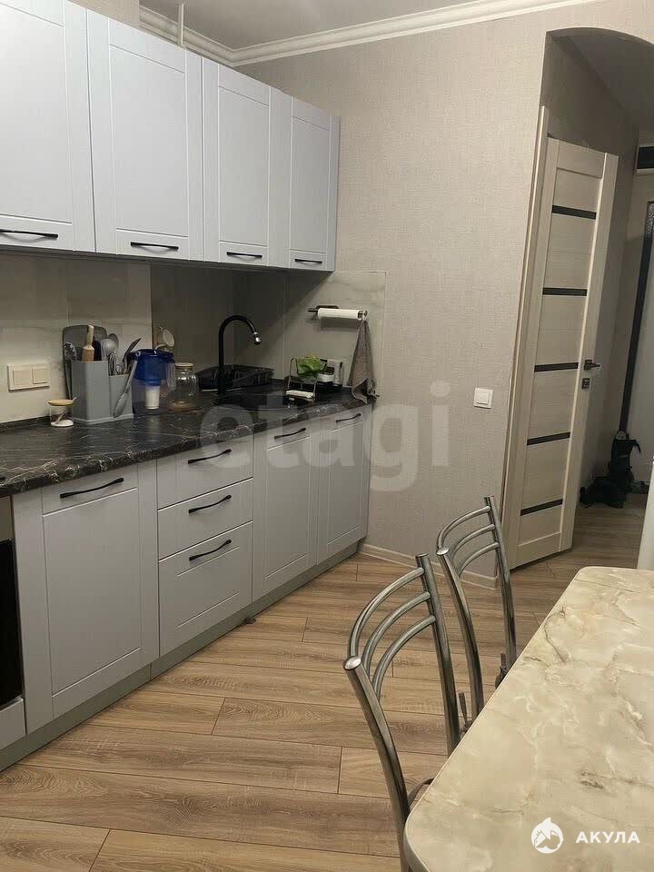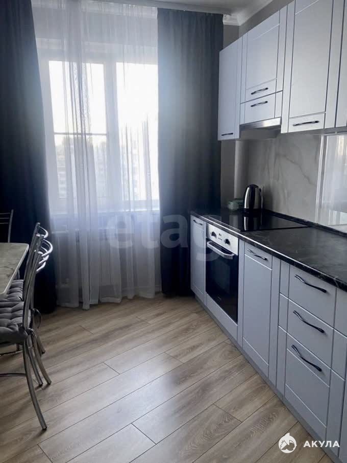 Собственная кухня полностью укомплектована встроенной техникой, включая плиту и духовой шкаф. Из квартиры выходит утепленный балкон с панорамным видом на городскую застройку. Транспортная доступность высокая — несколько автобусных остановок находятся в двух минутах ходьбы от дома. В шаговой доступности расположены школа, детский сад и торговый центр «Гудок» с широким выбором магазинов и услуг.