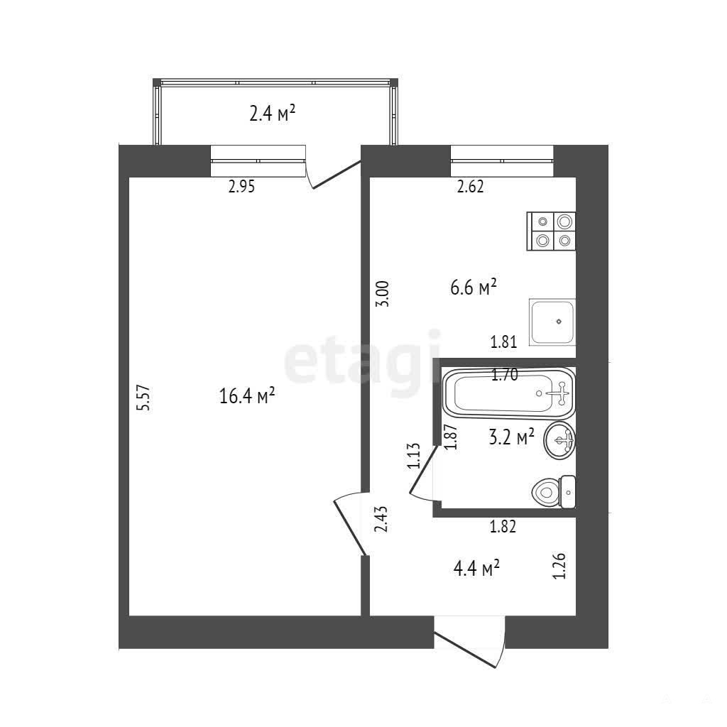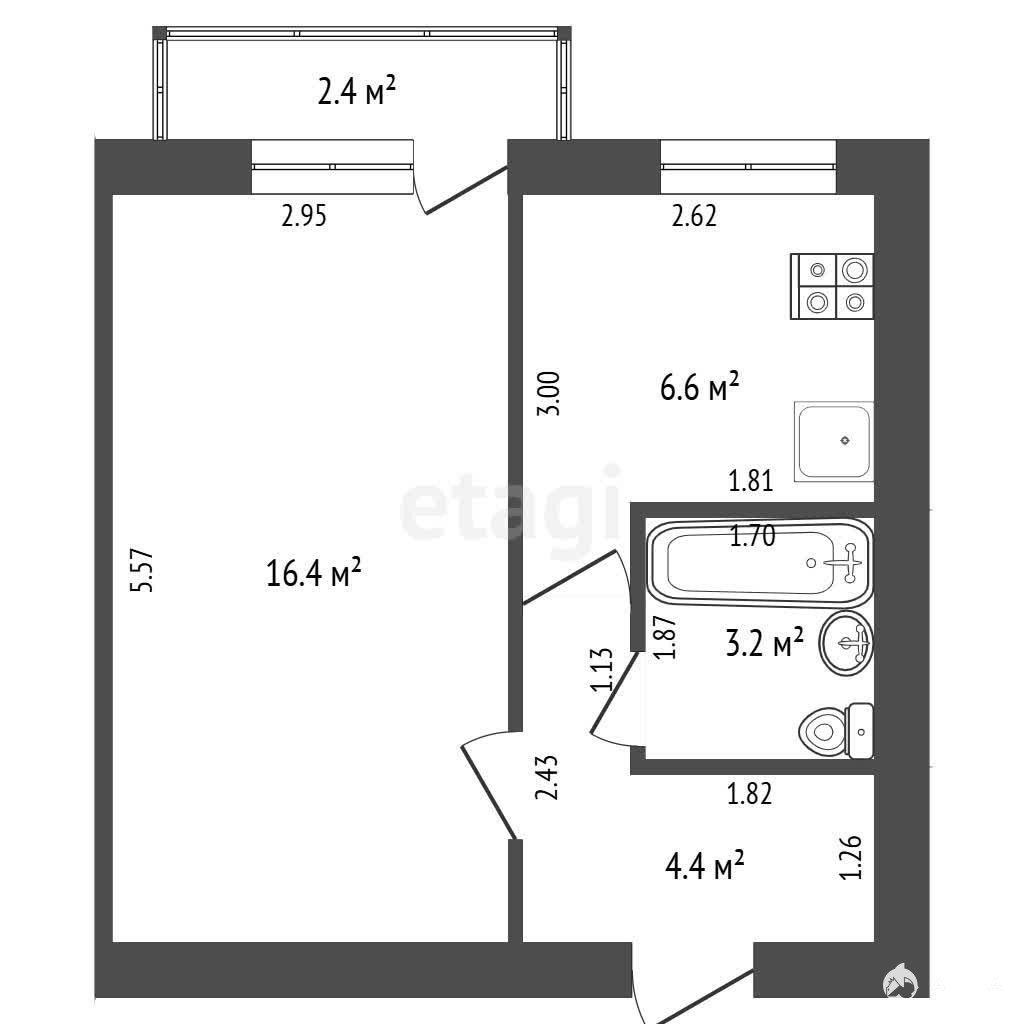 - 16.4 м²