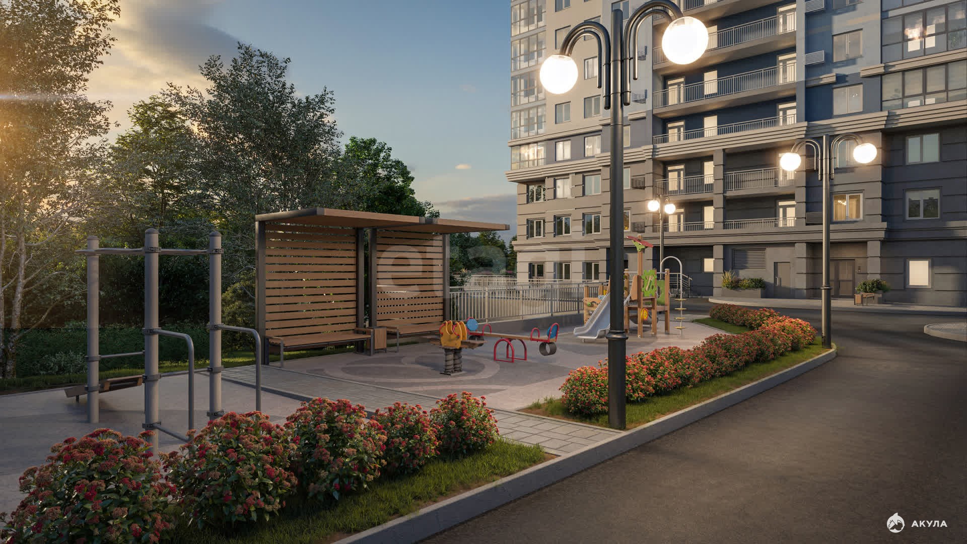 - Детская и спортивная площадки во дворе