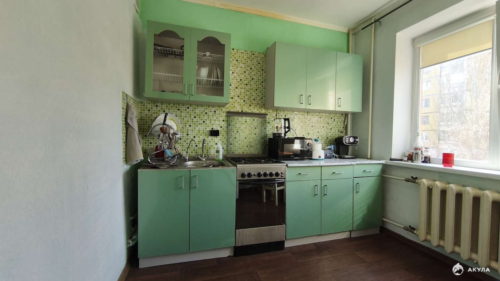 При продаже нашим покупателям оставим кухонный гарнитур, холодильник, шкафы, кровать.