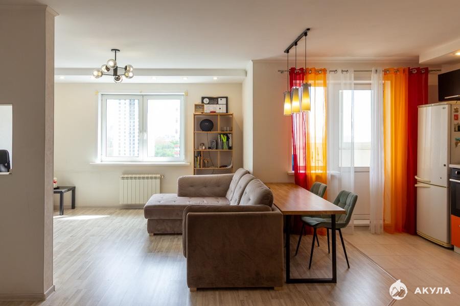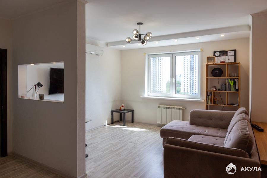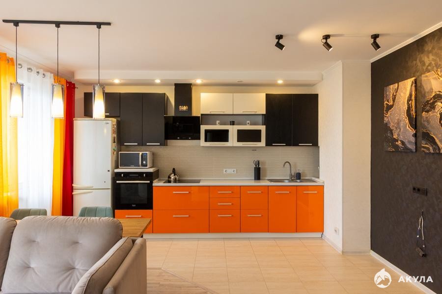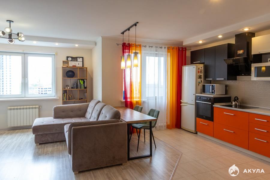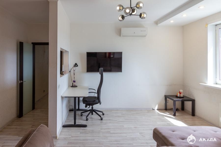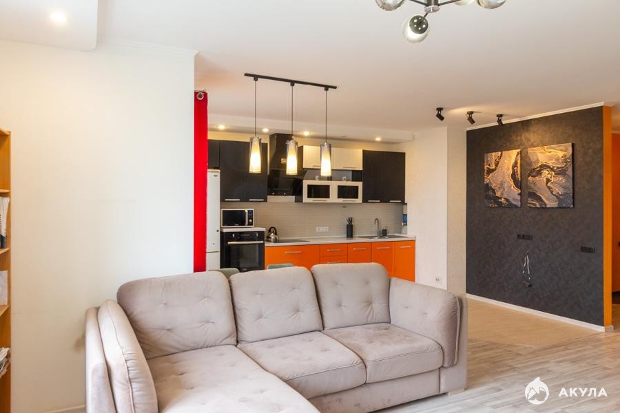 - Комнат: 2 гостиная совмещенная с кухней + отдельная спальня