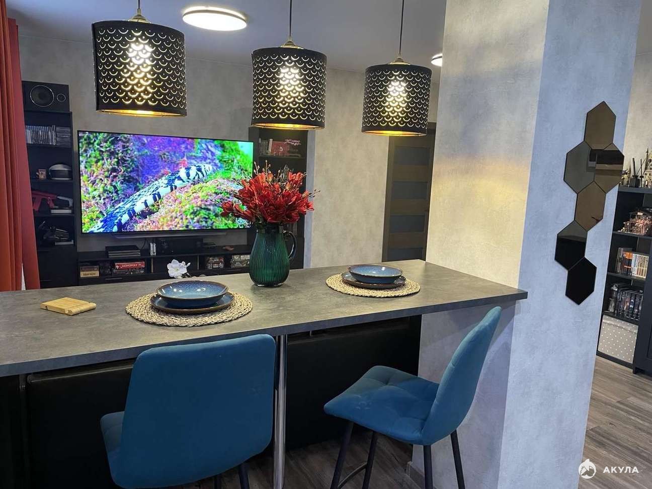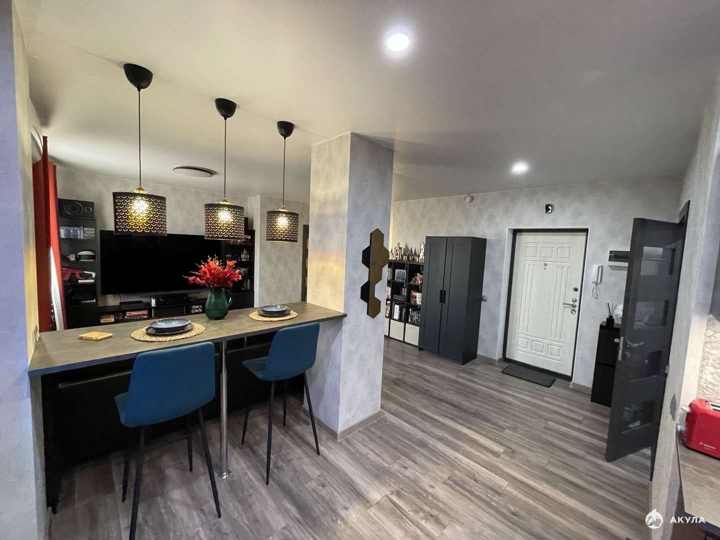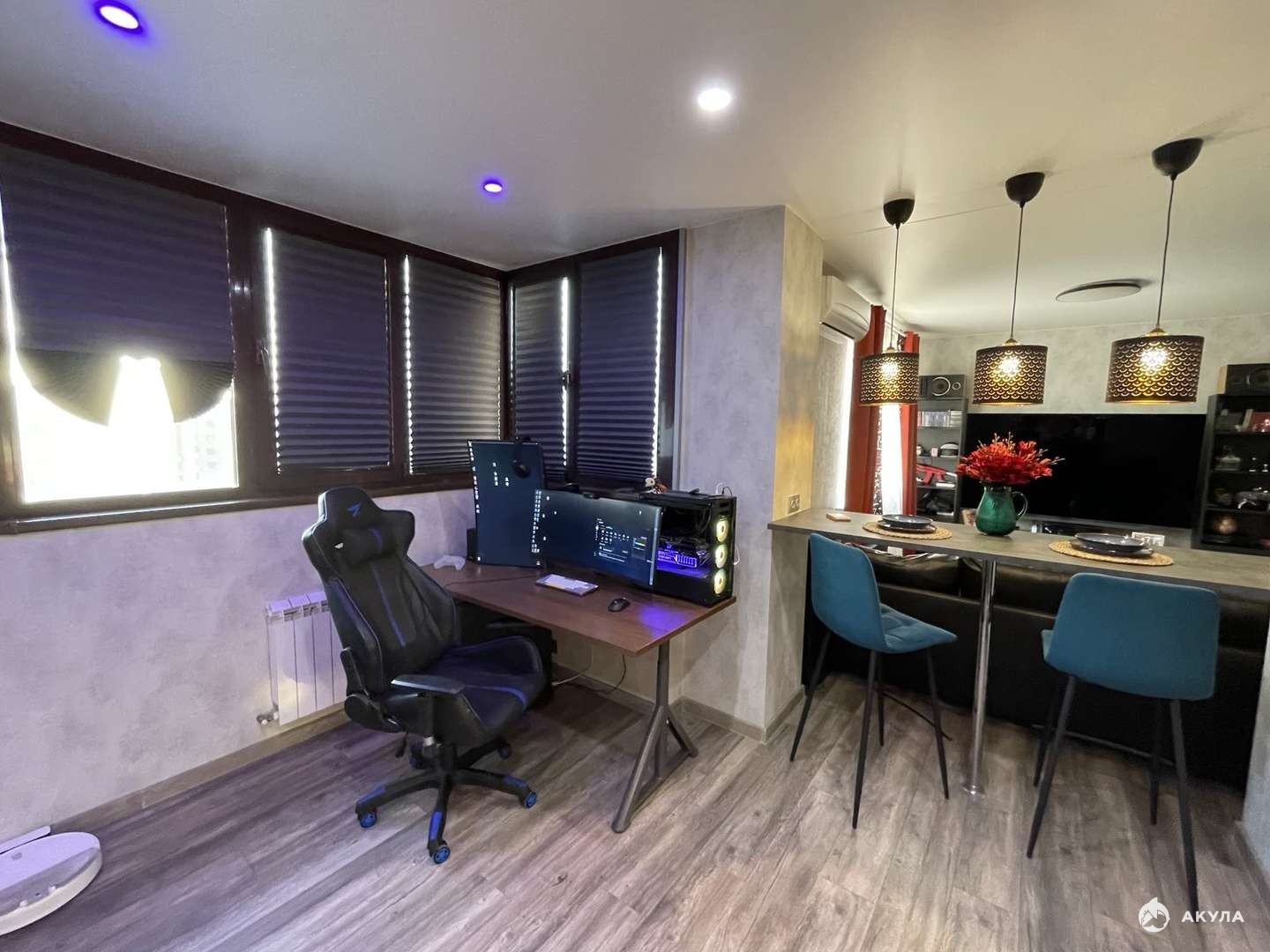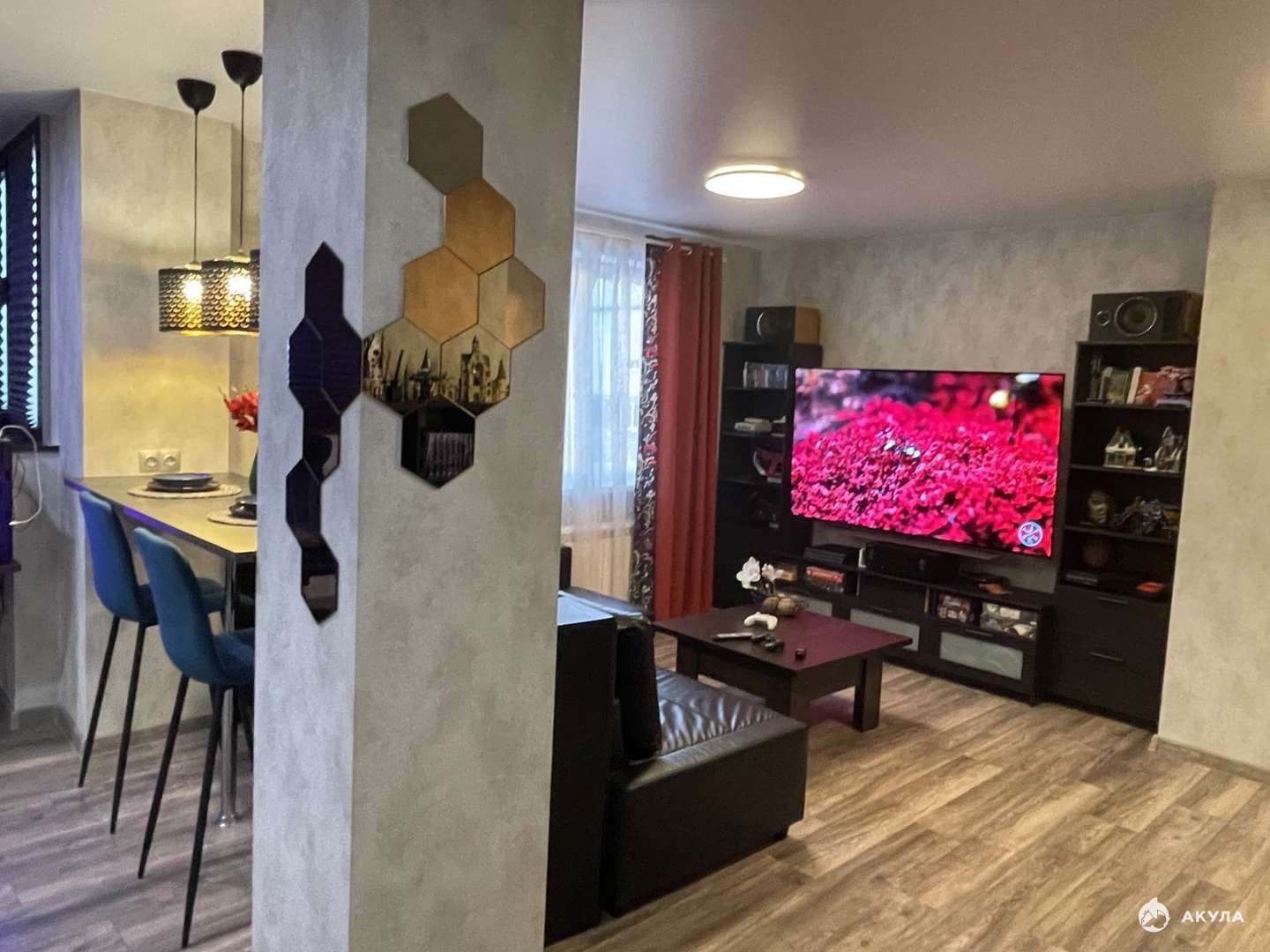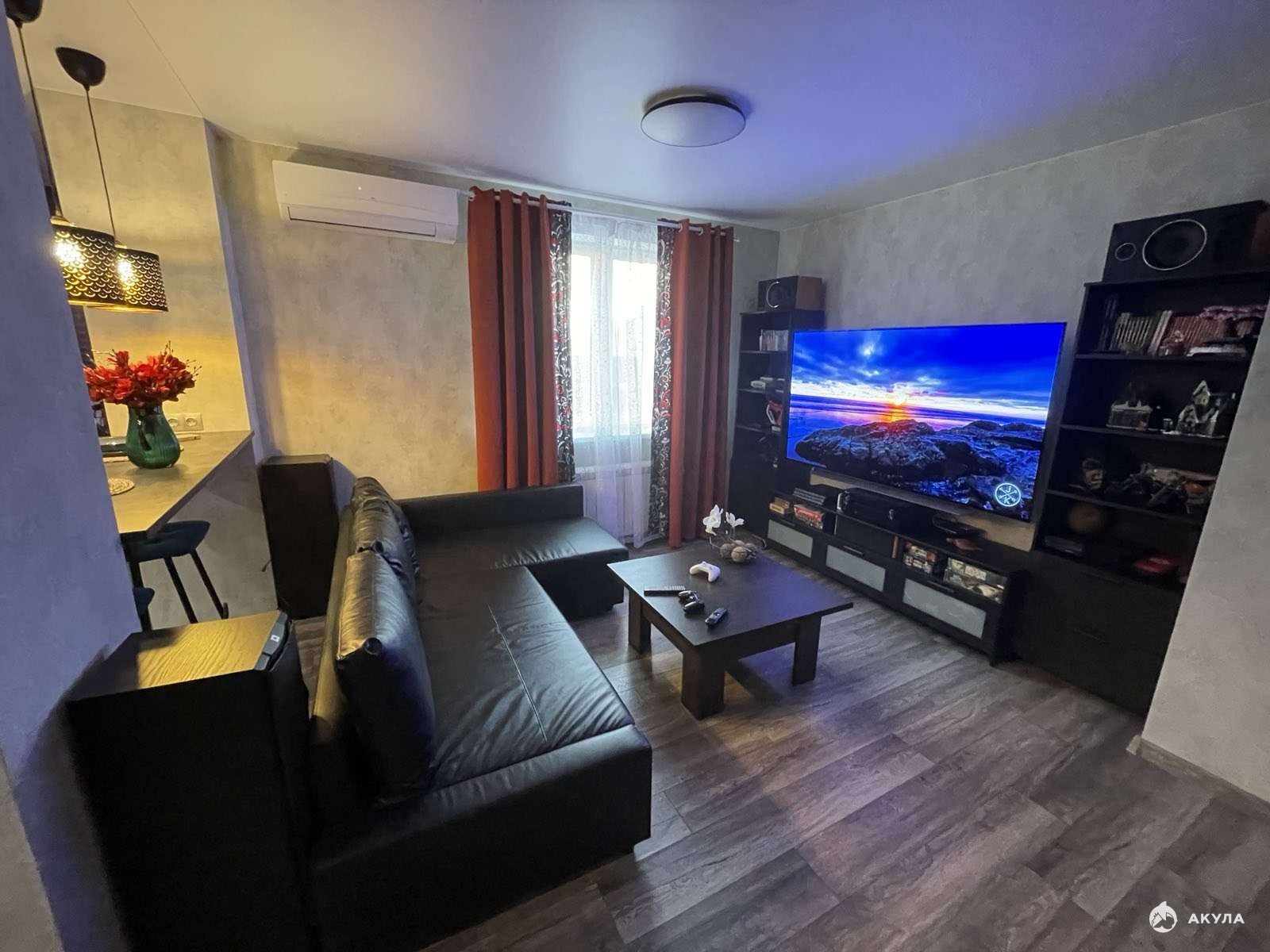 Продается уютная светлая видовая квартира в современном районе городе в Жилом комплексе Центральный. Сделана перепланировка, не узаконена. Спальня 21, 5 кв.м., выход на лоджию 3, 12 кв.м. Кухня-гостиная 30 кв.м, Холл 11, 4 кв.м. Под телевизором выходит разводка Ethernet кабеля (cat.6) и роутер, от роутера к рабочим местам. Из этого места Wifi 5ghz добивает в любую точку квартиры. Есть разводка акустического кабеля под 4 колонки по кругу (где они и стоят). В квартире остается кухонный гарнитур со встроенной техникой: посудомоечная машина, духовой шкаф, варочная панель, микроволновая печь, вытяжка, два кондиционера. Остальное по договоренности. В договоре полная цена. Один взрослый собственник. Обременений нет. Звоните, покажем в удобное для вас время. Также имеется машиноместо в паркинге 19 кв.м.