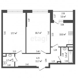 Продаётся уютная 2-комнатная квартира улучшенной планировки площадью 50, 6 кв.м. Кухня 9, 7 кв.м, комнаты 17, 4 кв.м. и 12, 5 кв.м. раздельные. Просторный коридор 7, 8 кв.м. Санузел раздельный. Есть застекленная лоджия 4, 1 кв.м. В квартире заменена проводка, стояки, трубы и радиаторы, стоят...