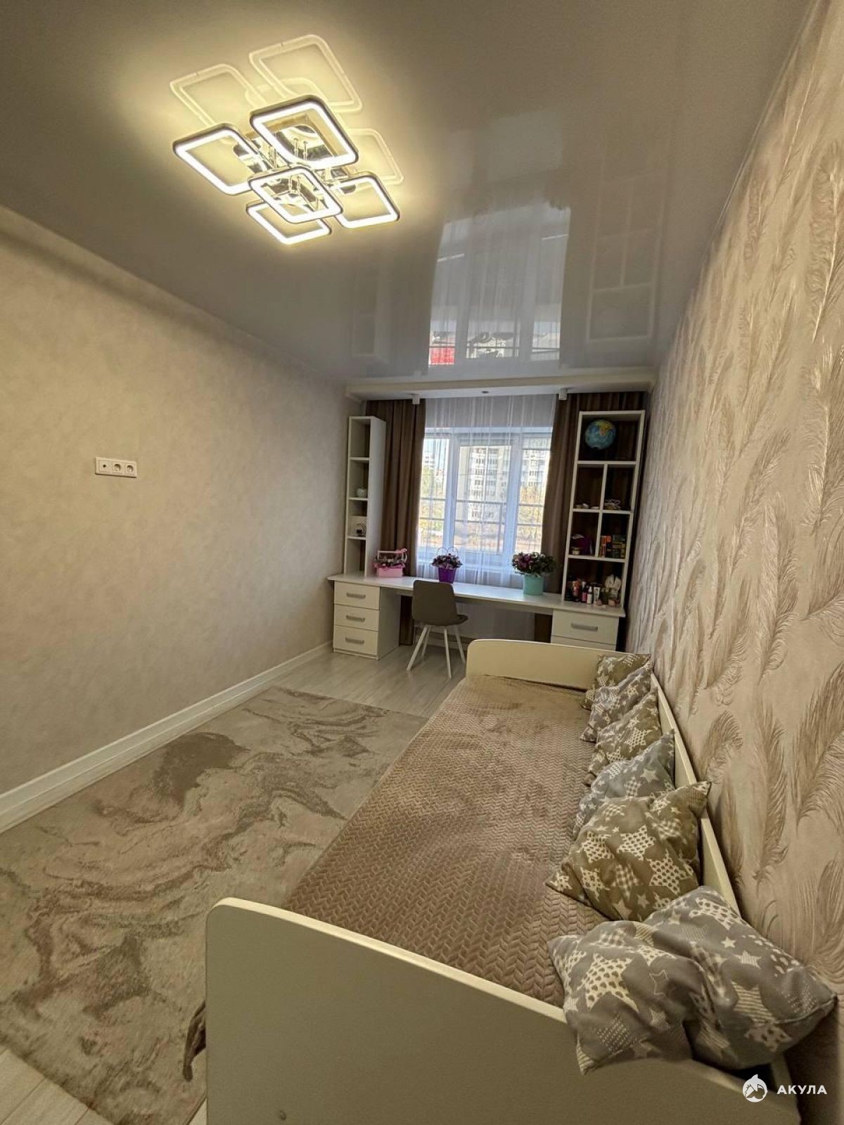 В квартире остается встроенная кухня, шкафы в коридоре, встроенный письменный стол с полками в детской.