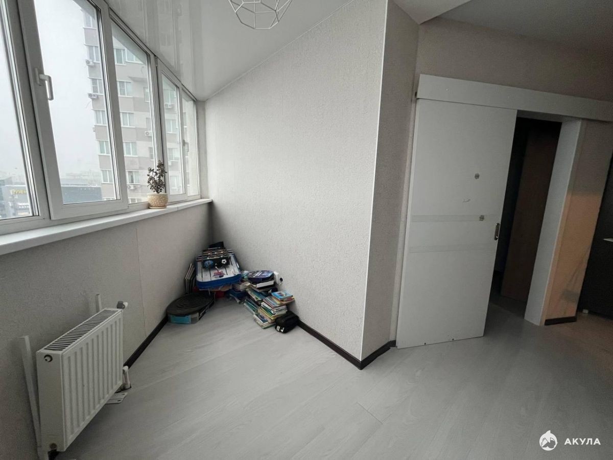 Лоджия обеспечивает прекрасный вид на окрестности, что делает эту квартиру ещё более привлекательной.