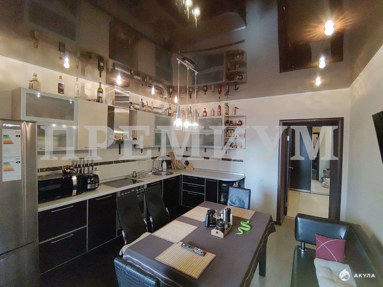 В квартире сделан отличный ремонт из качественных материалов. В кухне установлен гарнитур, сделан под заказ из качественного материала с дорогими комплектующими, в том числе с доводчиками Блюм. В комнатах — натяжные потолки, на полу-ламинат, в холле и санузлах пол выложен плиткой. Ванная комната также выложена плиткой, что делает её светлой и тёплой. В квартире остается кухонный гарнитур, встроенные шкафы, остальная мебель по договоренности.