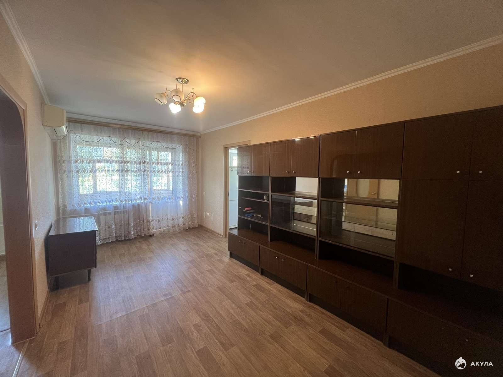 Общая площадь квартиры с учетом балкона 45 кв.м. Комнаты смежные, санузел, совмещенный, балкон застеклен, ремонт косметический (но квартира чистая, уютная, можно заехать и жить). Поменяны окна и радиаторы отопления.