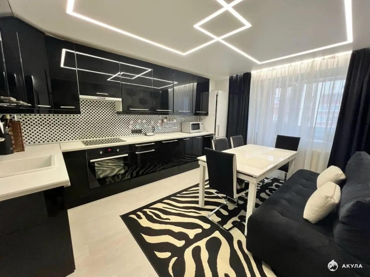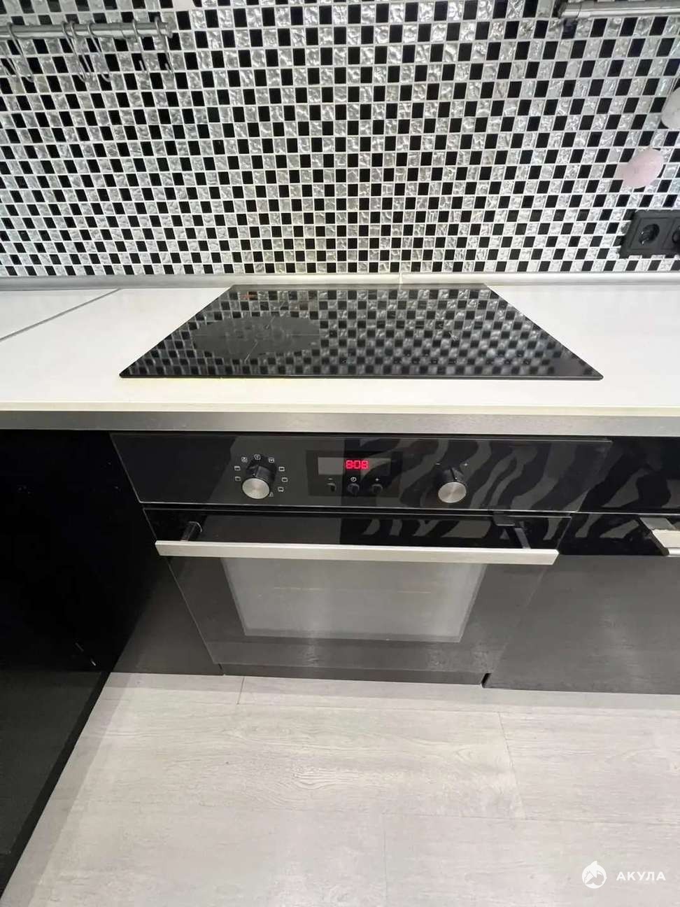 Встроенная техника европейского производства остается новым владельцам: холодильник и стиральная машина Indesit (Германия), индукционная панель и духовой шкаф Electrolux, микроволновая печь Panasonic.