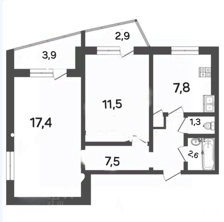 Раздельные комнаты и туалет с ванной комнатой позволят поселиться тут семье с детьми.