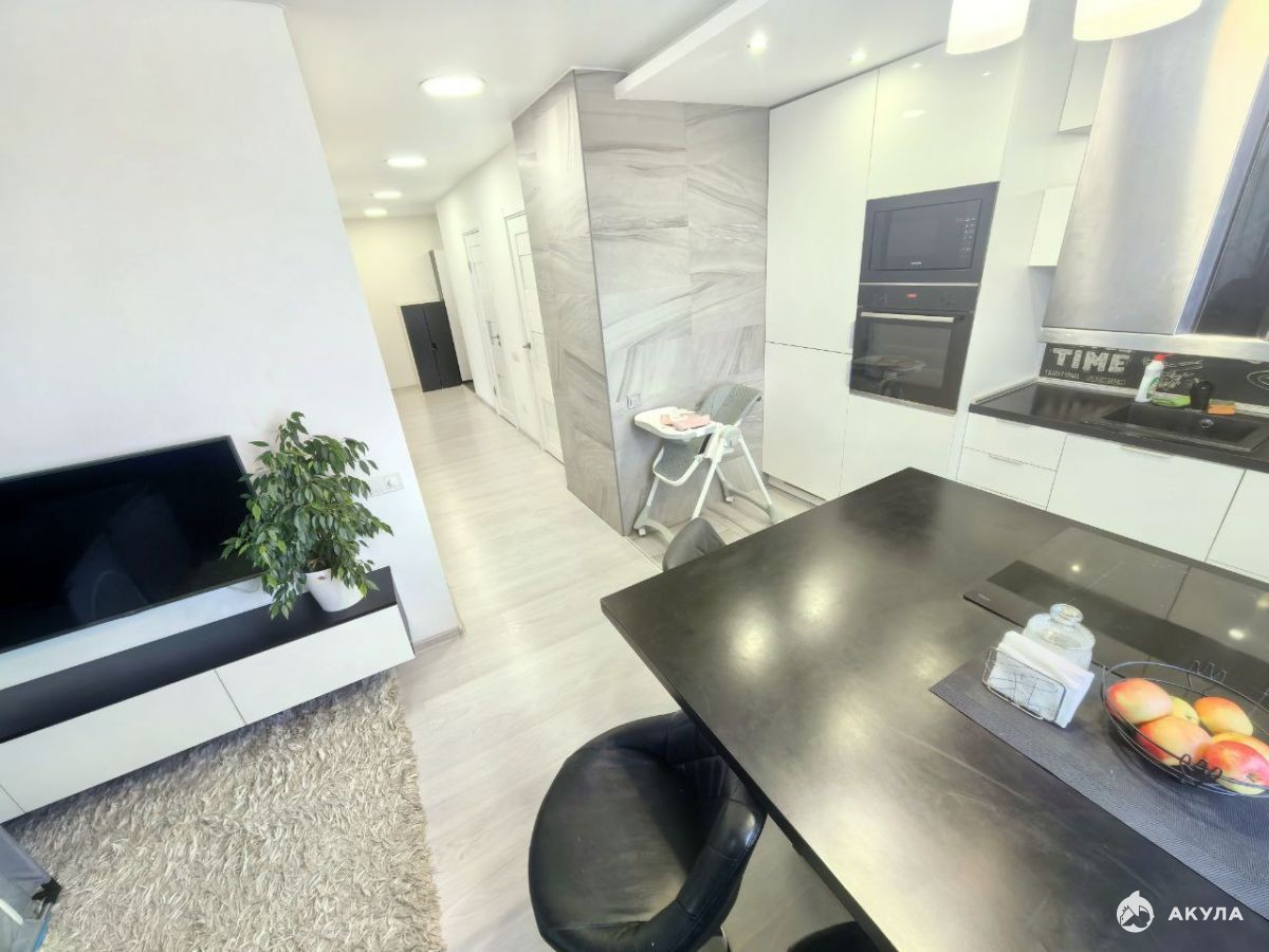 Квартира просторная, светлая и тёплая. Комнаты изолированные, кухня-гостиная остается вся встроенная техника - многофункциональное пространство объединяющее зону приготовления пищи, столовую и зону отдыха и способствует общению членов семьи.
