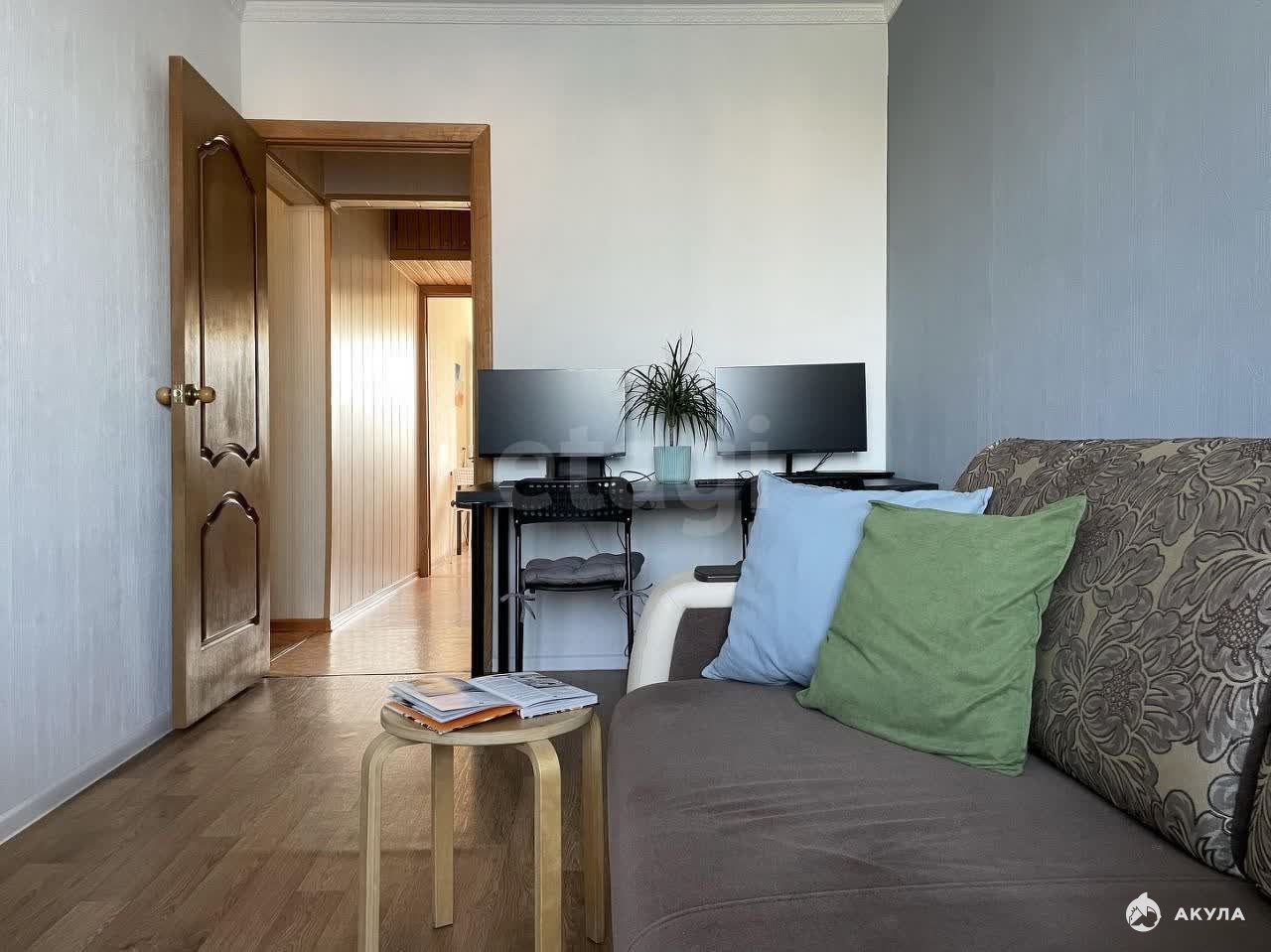 Продается просторная двухкомнатная квартира площадью 50, 3 м² в кирпичном доме 1977 года постройки. Объект расположен на 8 этаже 9-этажного здания, что гарантирует хорошую инсоляцию и отсутствие шума от придомовой территории — окна выходят на тихий двор. Планировка рациональна и включает две изолированные комнаты общей жилой площадью 27, 9 м², отдельный санузел и практичную кладовую для хранения. Кухня размером 7, 9 м² функциональна и позволяет разместить обеденную группу. Дополнительным преимуществом является наличие застекленной лоджии с готовой отделкой и балкона, которые можно использовать как зону отдыха или полезное хозяйственное пространство. В большой комнате уже установлен кондиционер. Квартира продается без бытовой техники, но практически вся корпусная мебель остается новому владельцу, что упрощает переезд и снижает первоначальные затраты. Вокруг сформирована вся необходимая инфраструктура: школы, детские сады, магазины и остановки наземного транспорта находятся в шаговой доступности. Это надежный вариант для комфортного проживания с оптимальным соотношением цены, качества и локации.