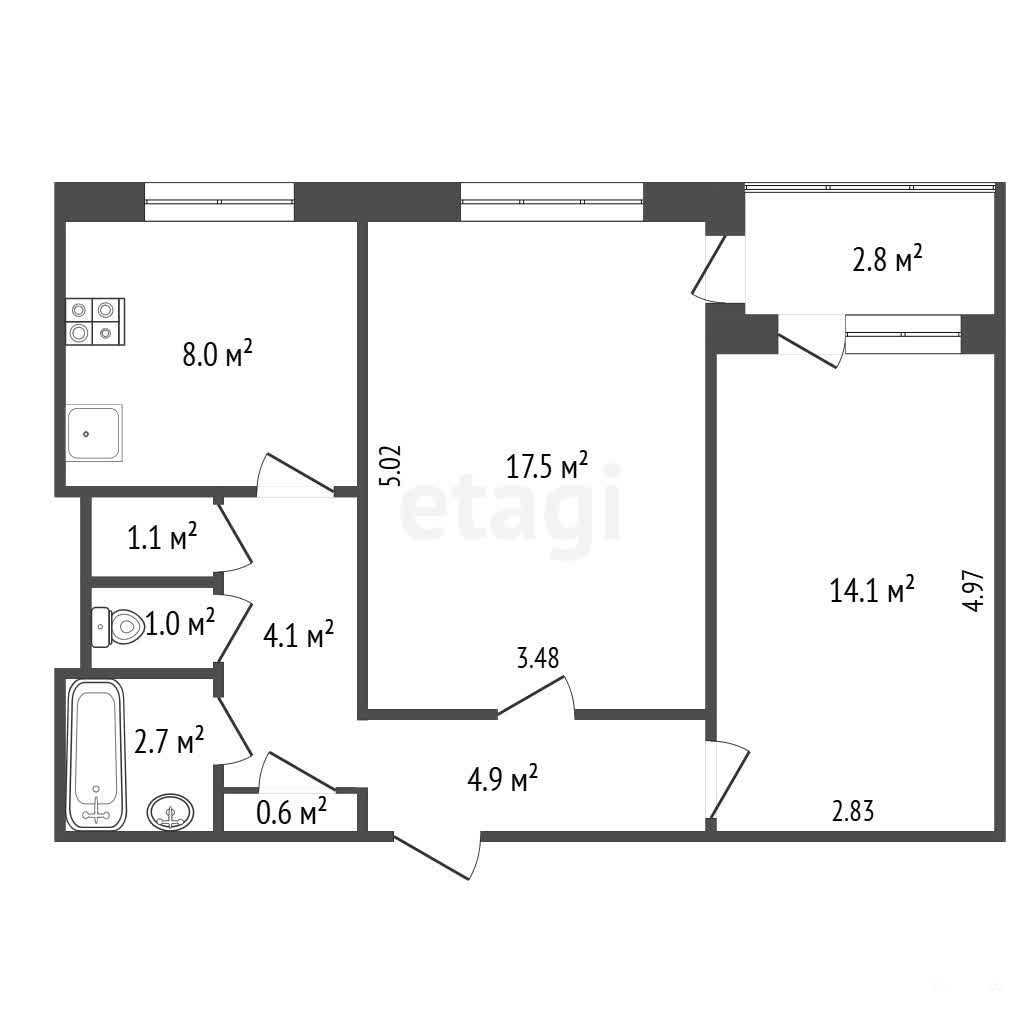 Санузел раздельный, есть кладовка для хозяйственных мелочей.