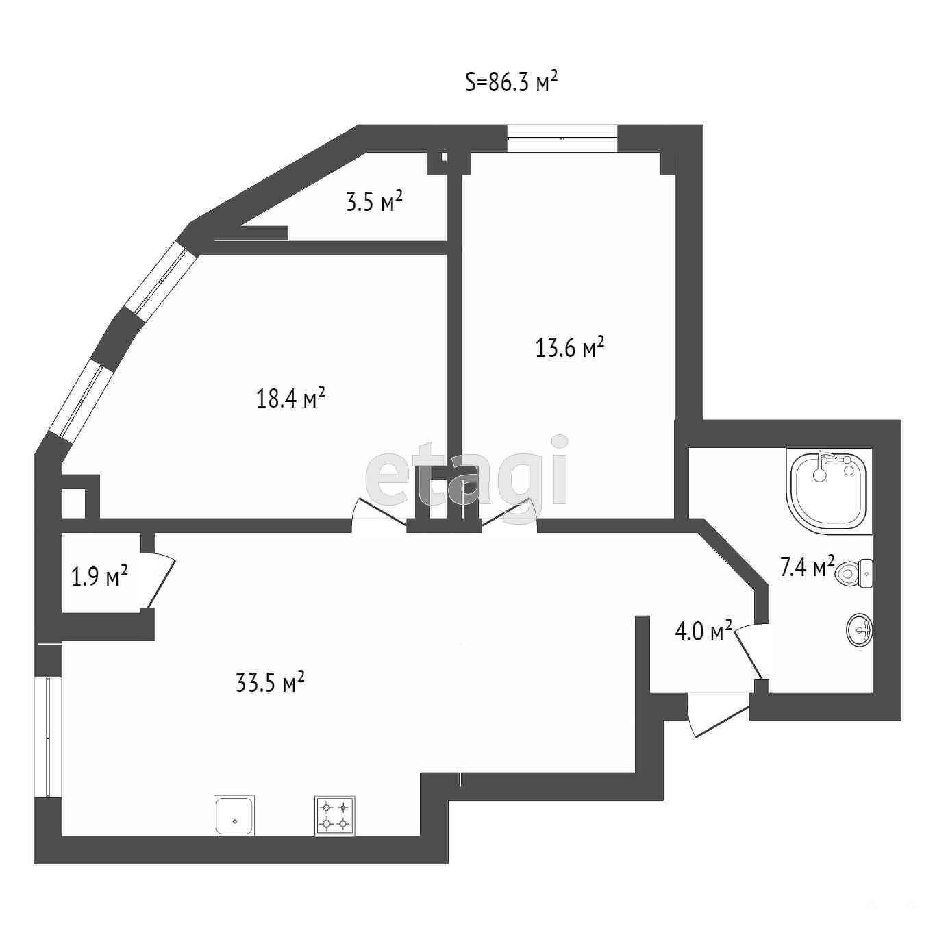 - Площадь кухни
